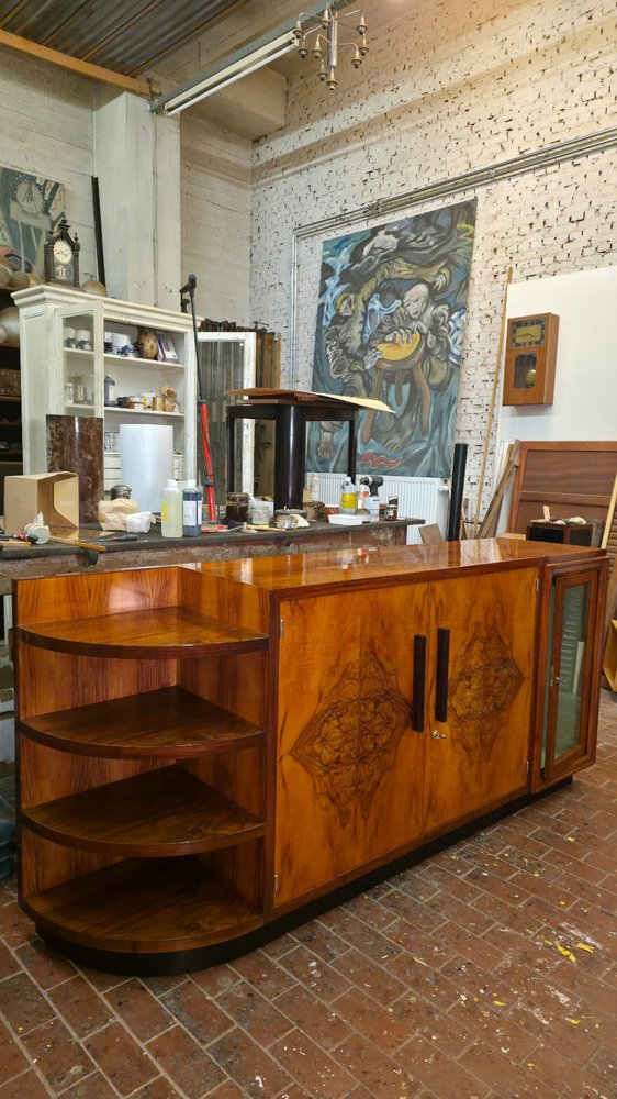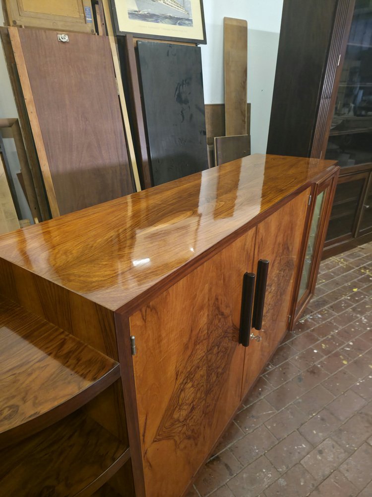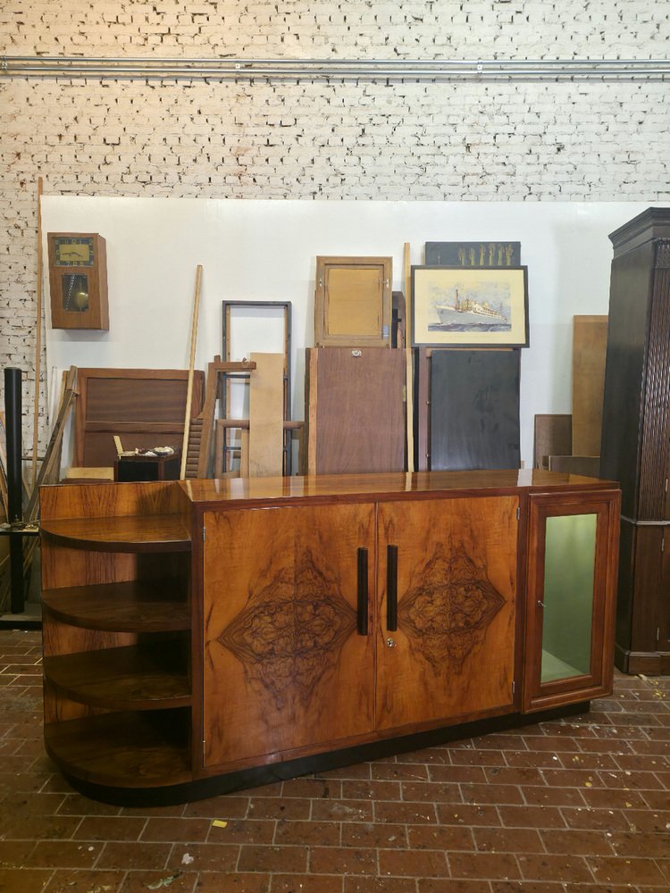 Magnificent modernist Art Deco-style sideboard with an elegant and asymmetrical design. Its original silhouette and refined finishes make it a distinctive piece, ideal for a sophisticated and unique interior.