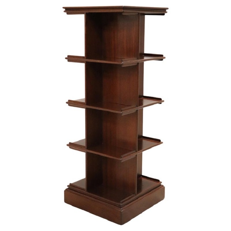 with five available shelves, this freestanding revolving bookcase, although designed for books, can also serve as an excellent display for a collection of precious objects such as small vases or ceramics. Pictured, it is paired with a stunning collection of Murano glass vases, making this bookcase a focal point of the room.