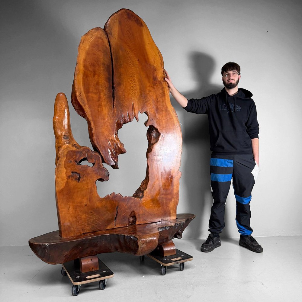 The piece has not been weighed, but given its volume and wood type, a conservative estimate of over 200 kg is realistic. Moving it requires at least three people, ideally with appropriate equipment—further emphasizing its monumental and enduring nature.