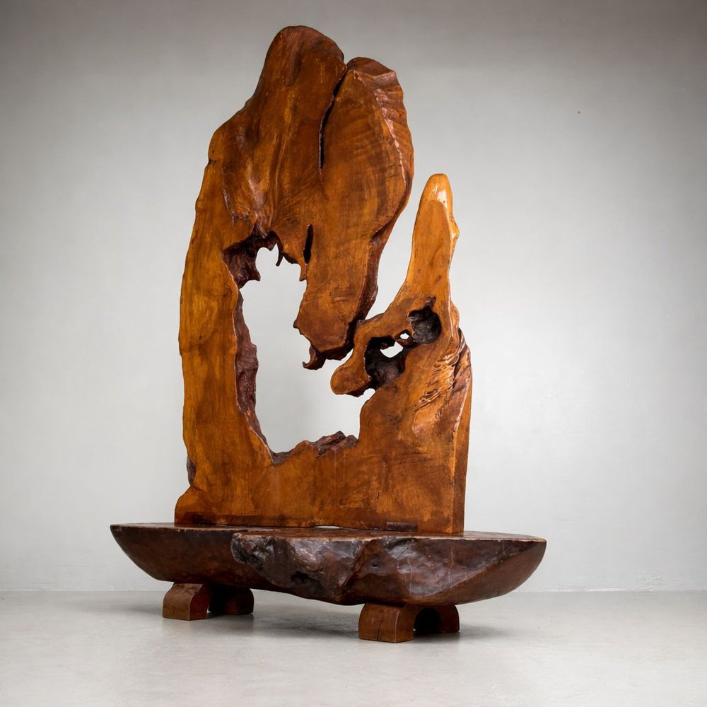 This monumental Japanese wooden display piece is an exceptional statement object where nature, scale, and craftsmanship come together. with its impressive size and organic silhouette, it stands as an autonomous sculptural work with a distinctly Japanese presence.
