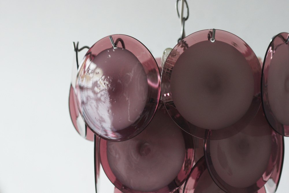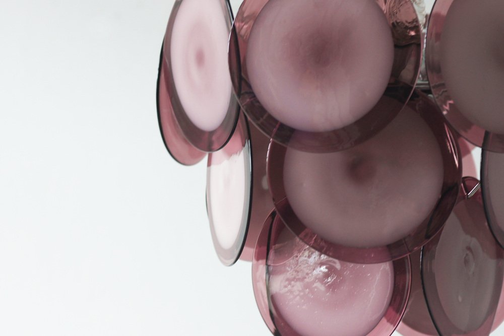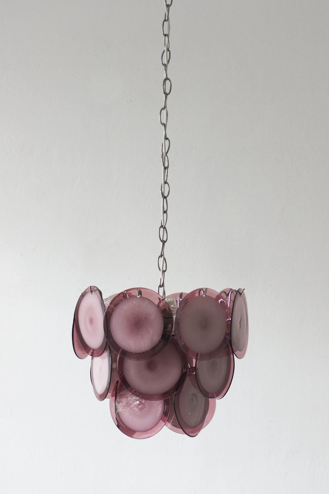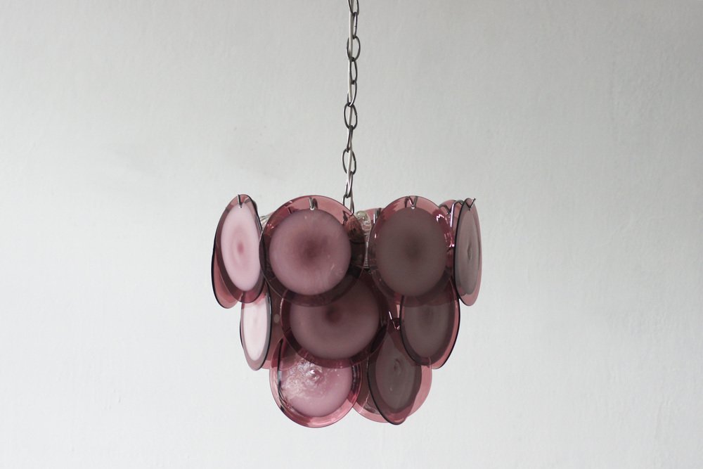 This 1970s model consists of 19 handcrafted glass discs in various shades of purple, from deep amethyst to delicate lavender.