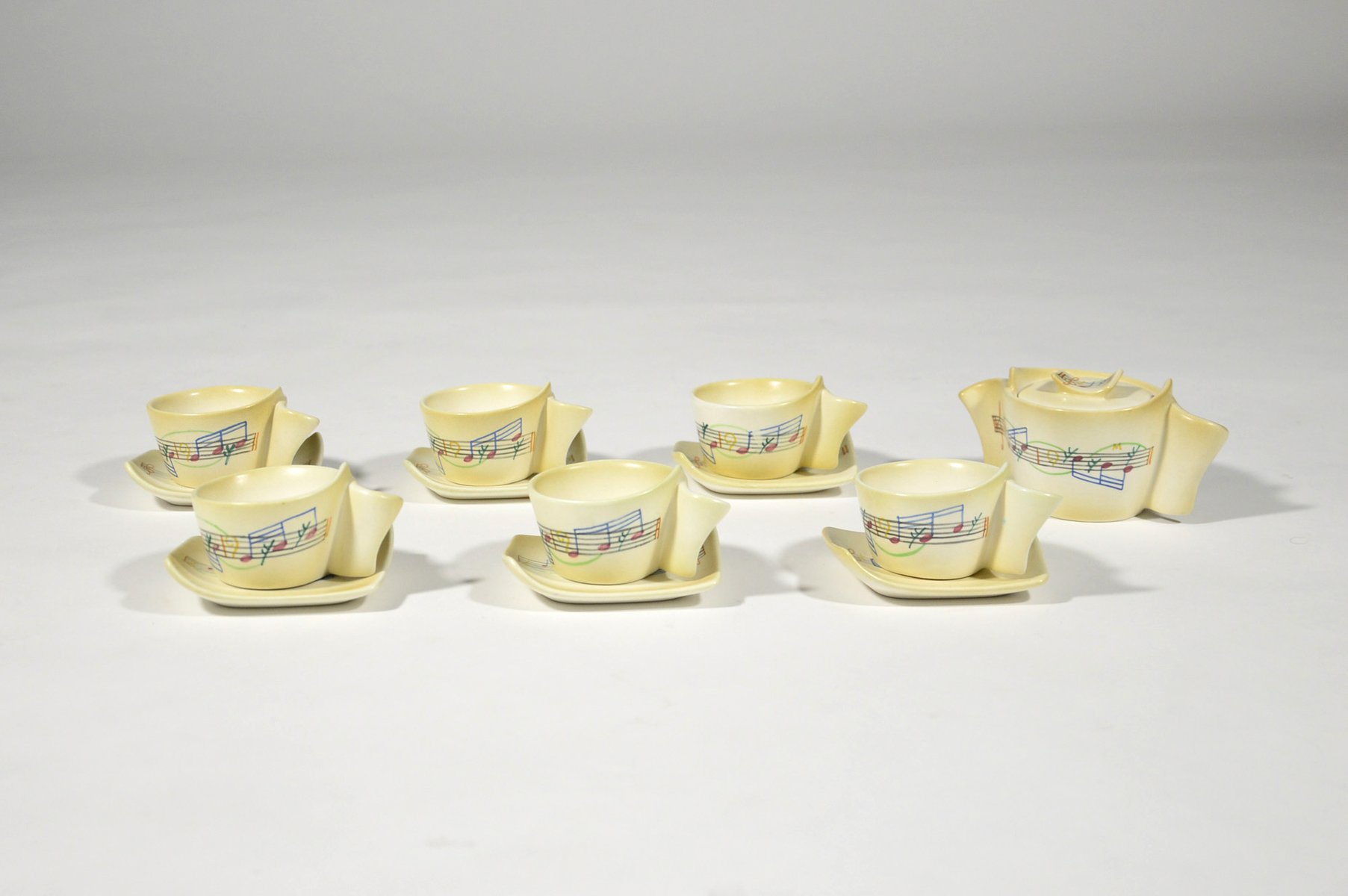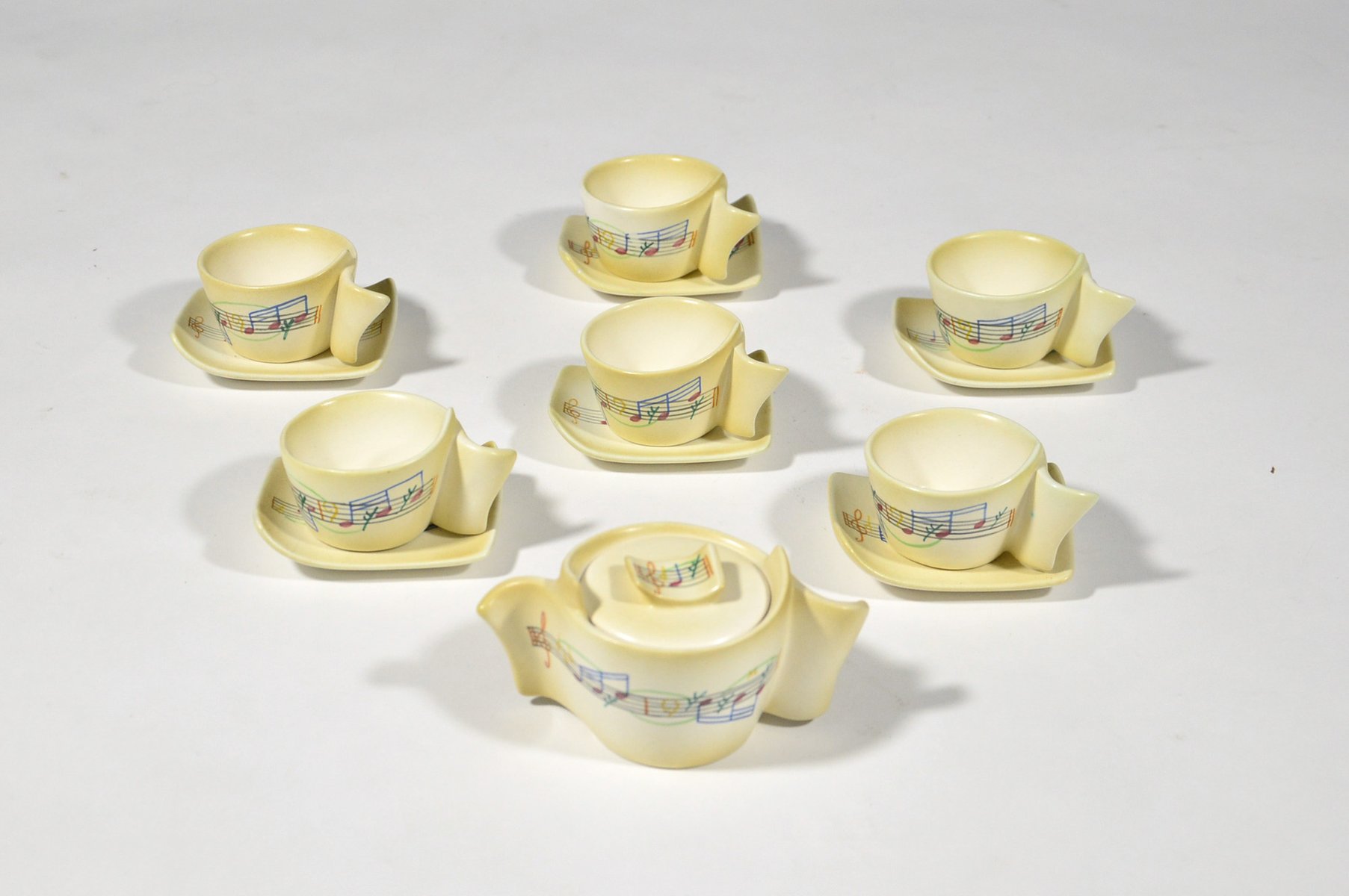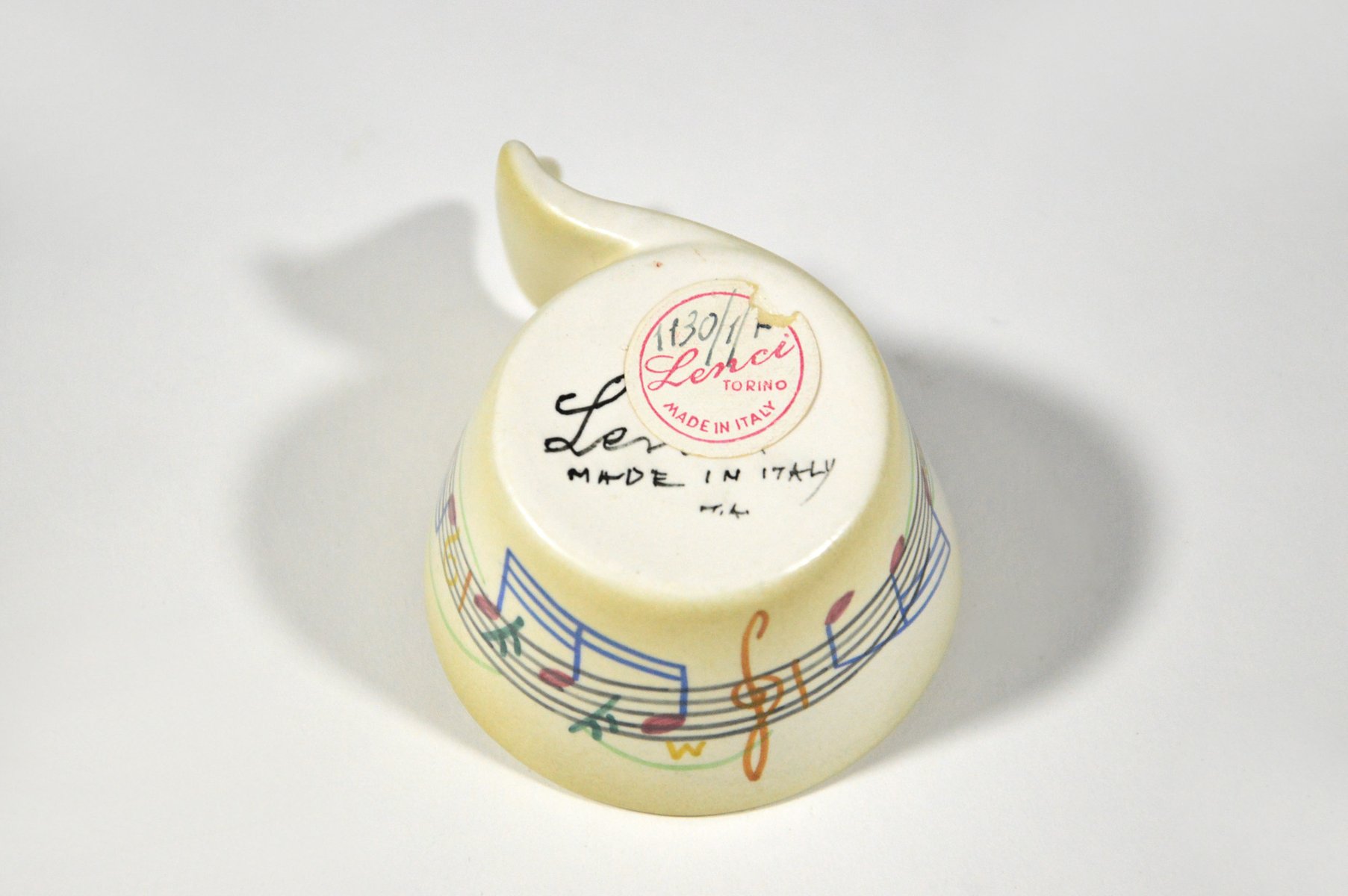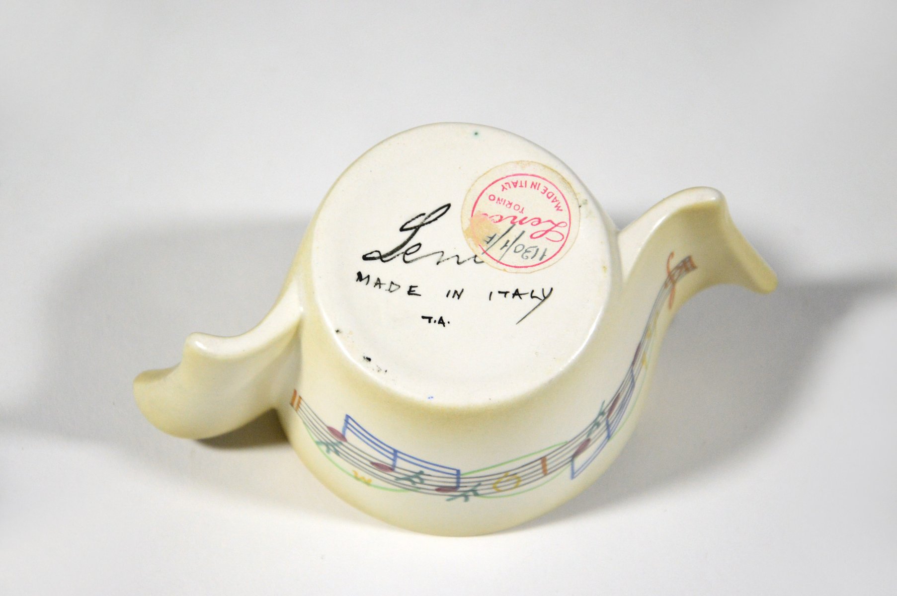 Das von Mario Sturani für die Turiner Manufaktur Lenci entworfene Musikservice ist so konzipiert, als bestünde jedes Element aus einem Papierblatt, genauer gesagt aus einer Partitur.