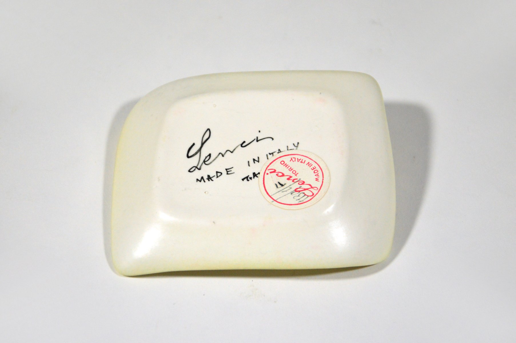 Die Zeichnung, auch wenn aus den 1940er Jahren, wurde modern, da diese Jahre in der Tat, die Lenci Manufaktur begann mit weniger dekorativen Formen zu experimentieren, für den Abschnitt von Objekten, die Vorwegnahme einige Themen der Nachkriegszeit italienischen Design.