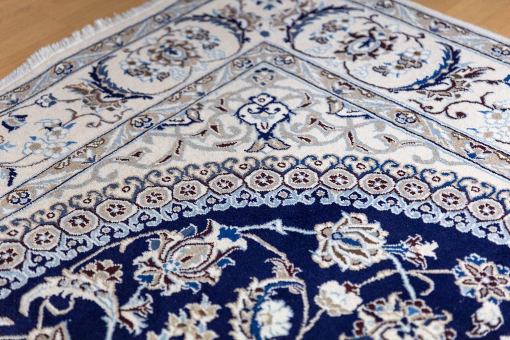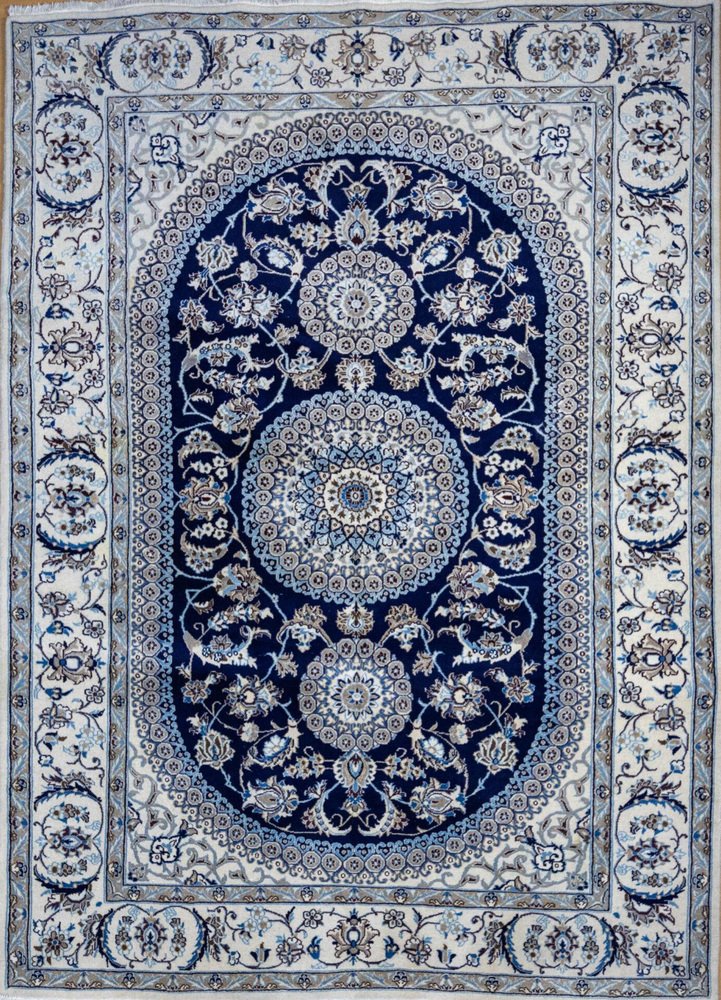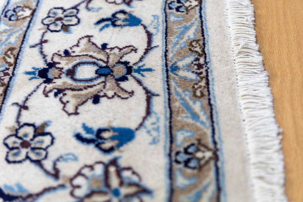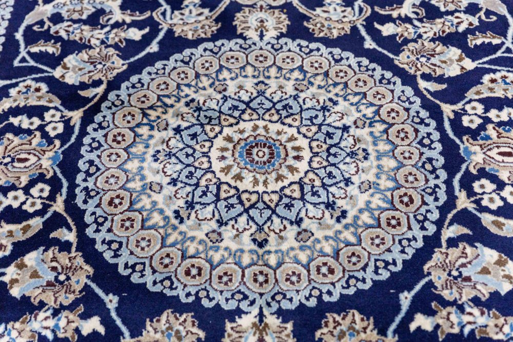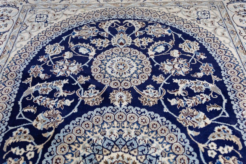Nahöstlicher handgeknüpfter Nain Kashmiri Teppich mit Lachak-Toranj Medaillon aus Seide