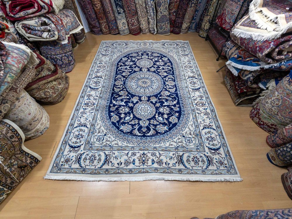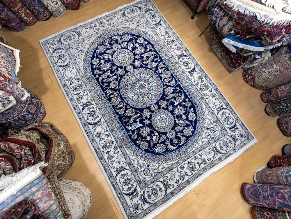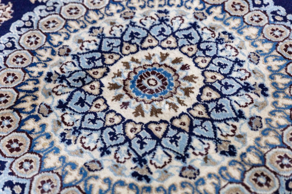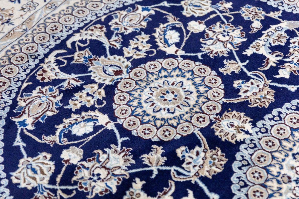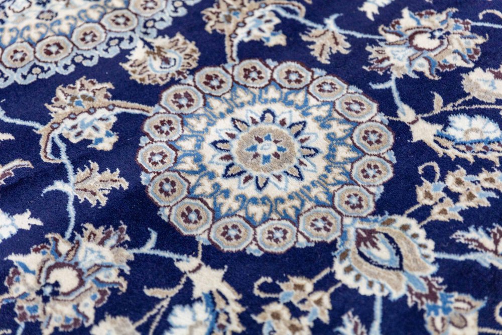 Nahöstlicher handgeknüpfter Nain Kashmiri Teppich mit Lachak-Toranj Medaillon aus Seide