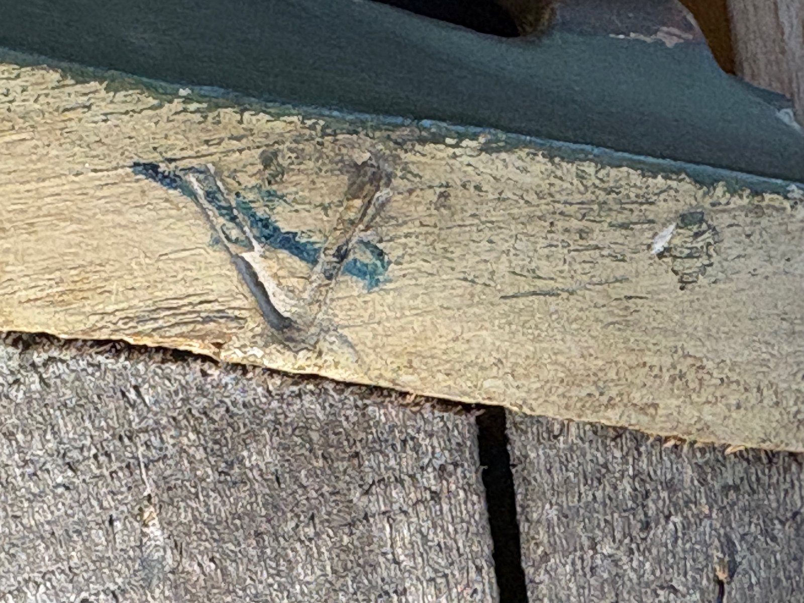Ein gestempelter Buchstabe "V", ein Montagezeichen der Zeit, unterstreicht den handwerklichen Charakter des Stücks.