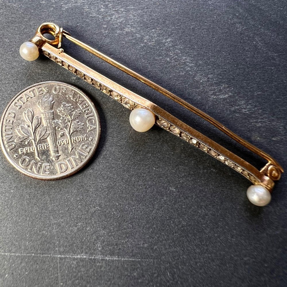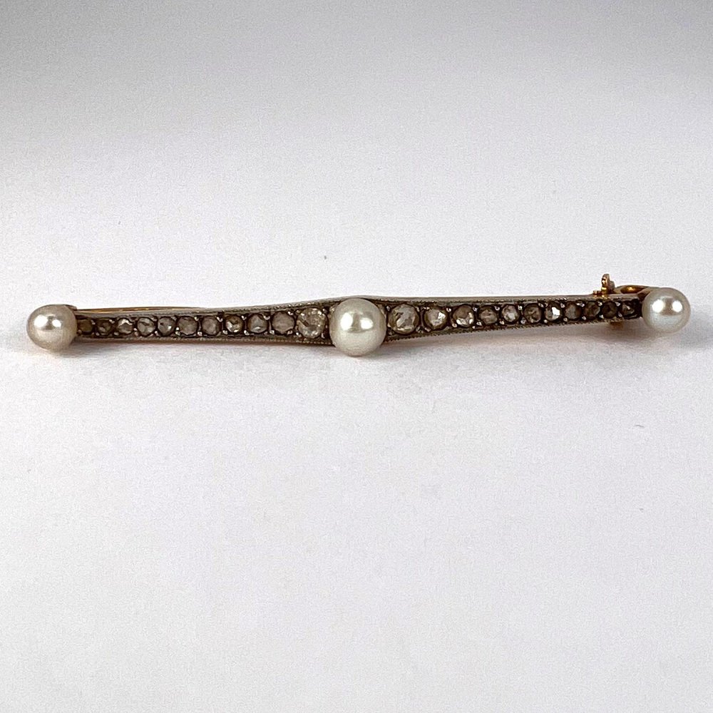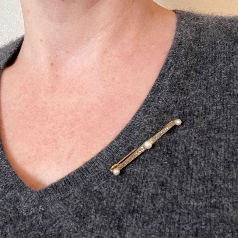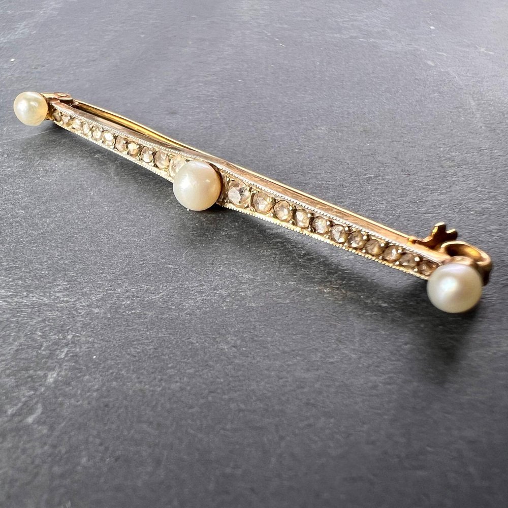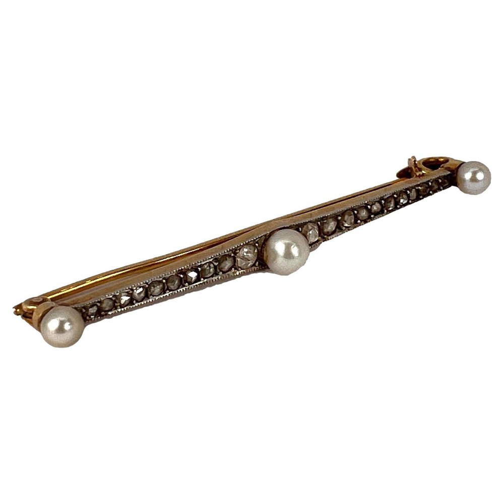 Natürliche weiße Perle & Diamantene 18 Karat Gelbgold Brosche, 1890er