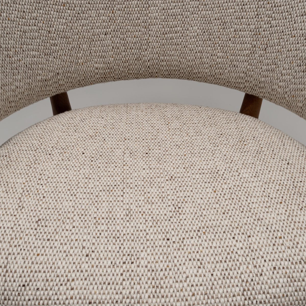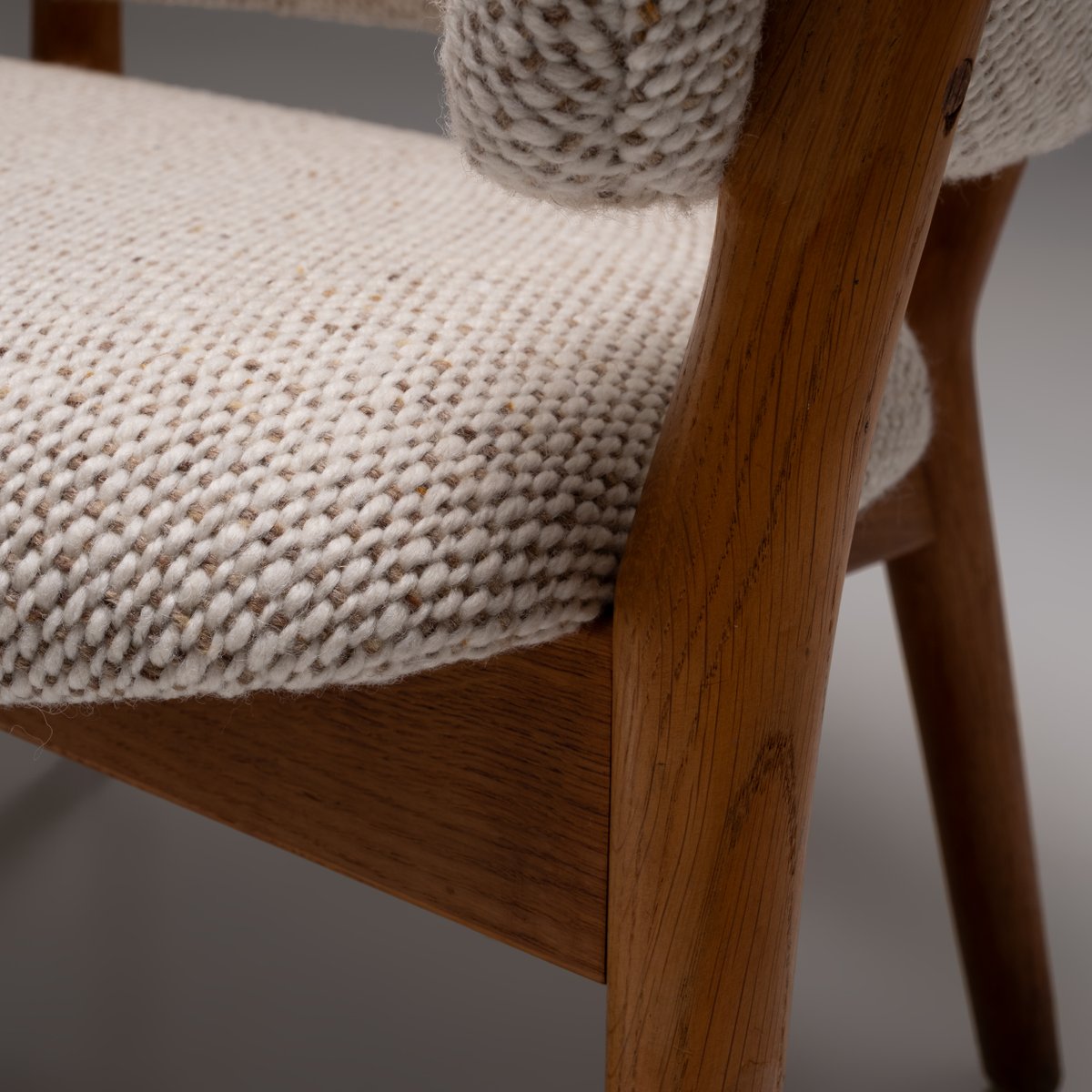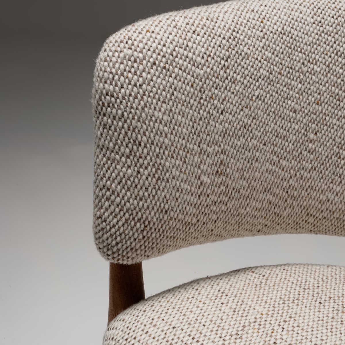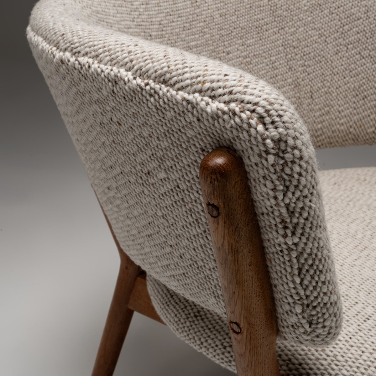 Die Sitze und Rückenlehnen sind mit dänischem, handgewebtem Wollstoff bezogen, der dem Eichenholz Textur, Wärme und einen taktilen Kontrast verleiht. Jedes Element des ND-83 spiegelt Ditzels Meisterschaft in Form, Handwerkskunst und Materialharmonie wider. Ein seltenes und zeitloses Set, das sich gleichermaßen als funktionale Sitzlösung und als sammelbares Designstatement eignet.
