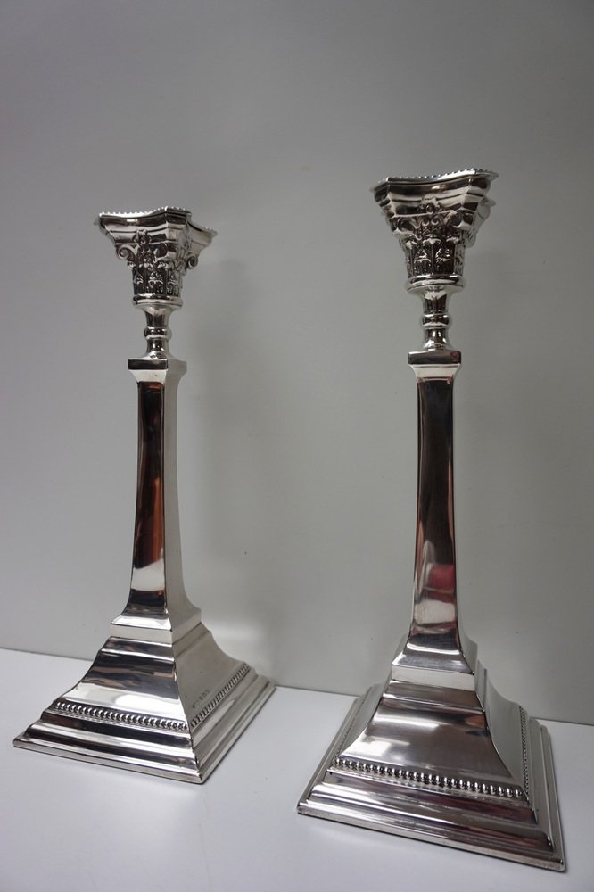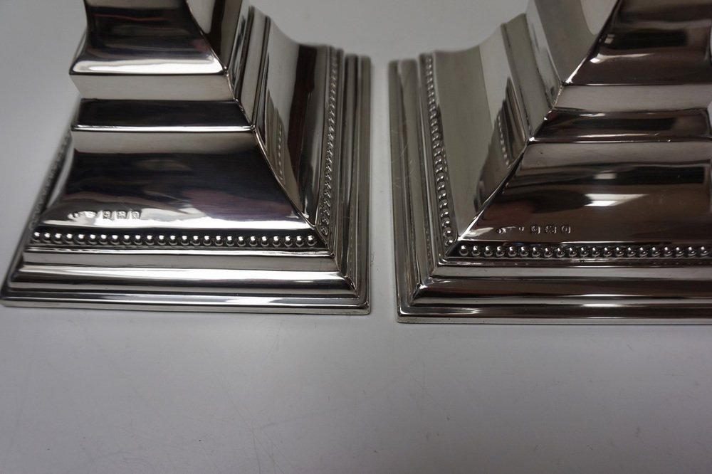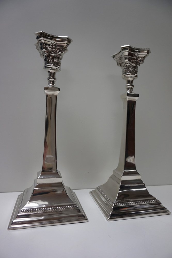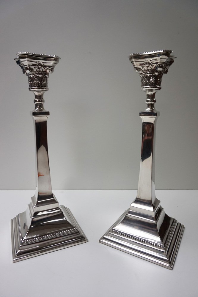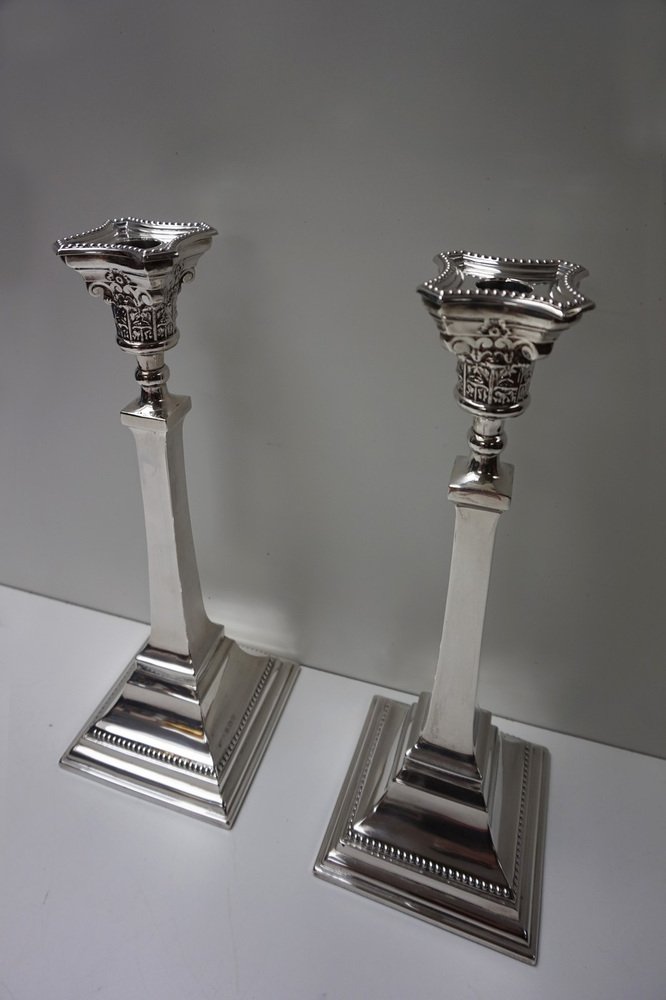 Neoklassizistische Sterling Silber Säulenförmige Kerzenhalter Birmingham von Bayliss & Coulthard, 1913, 2er Set