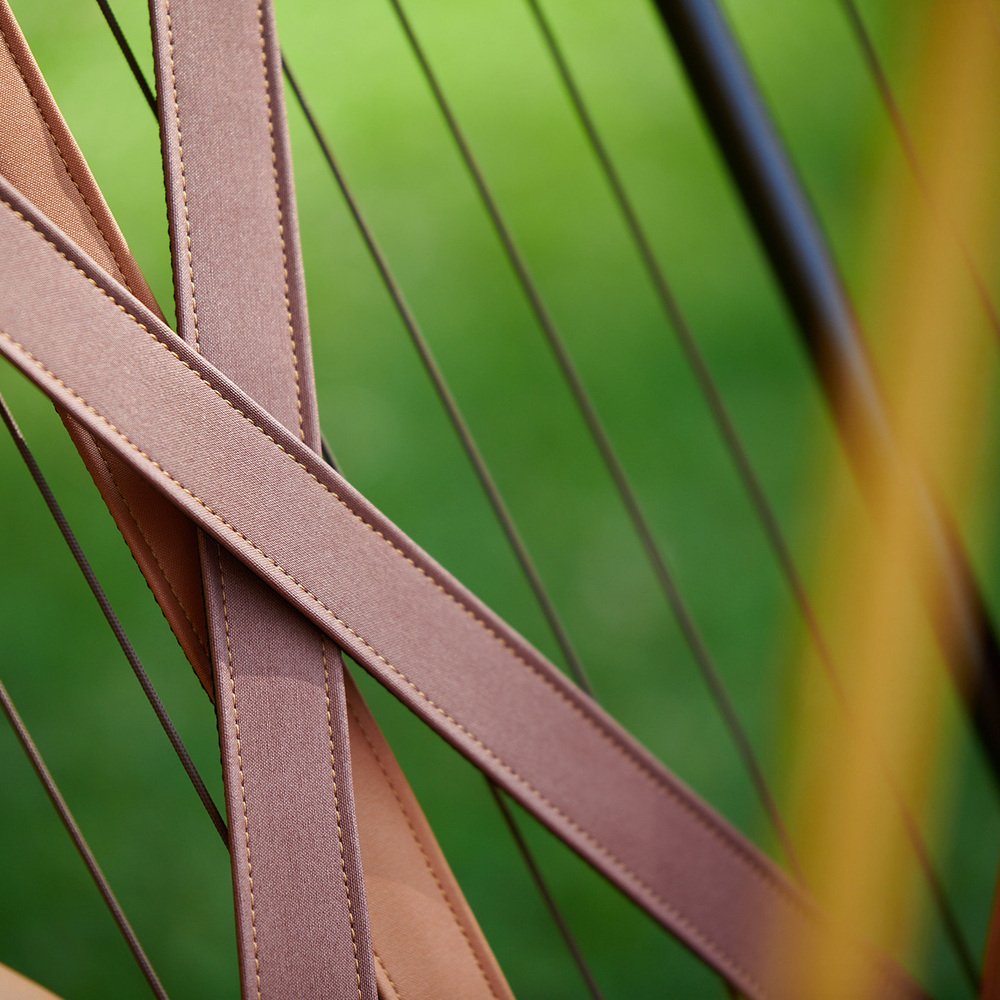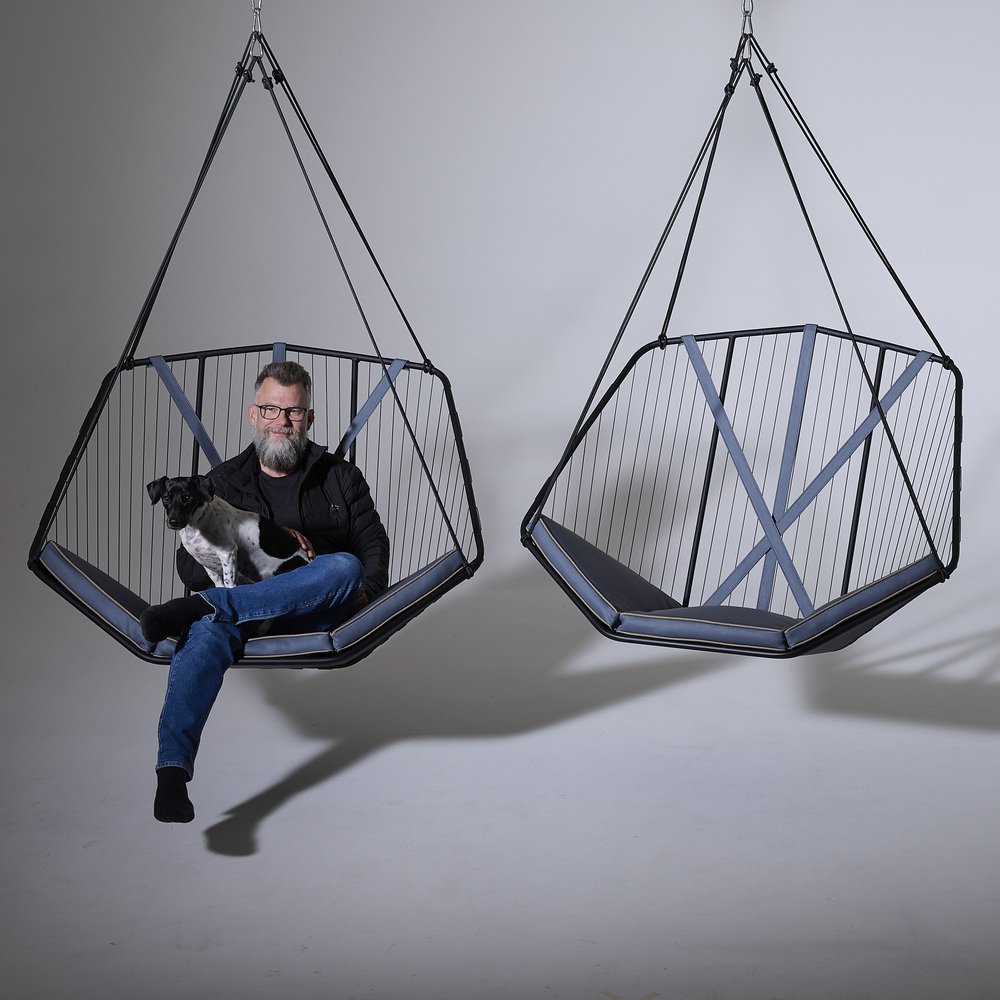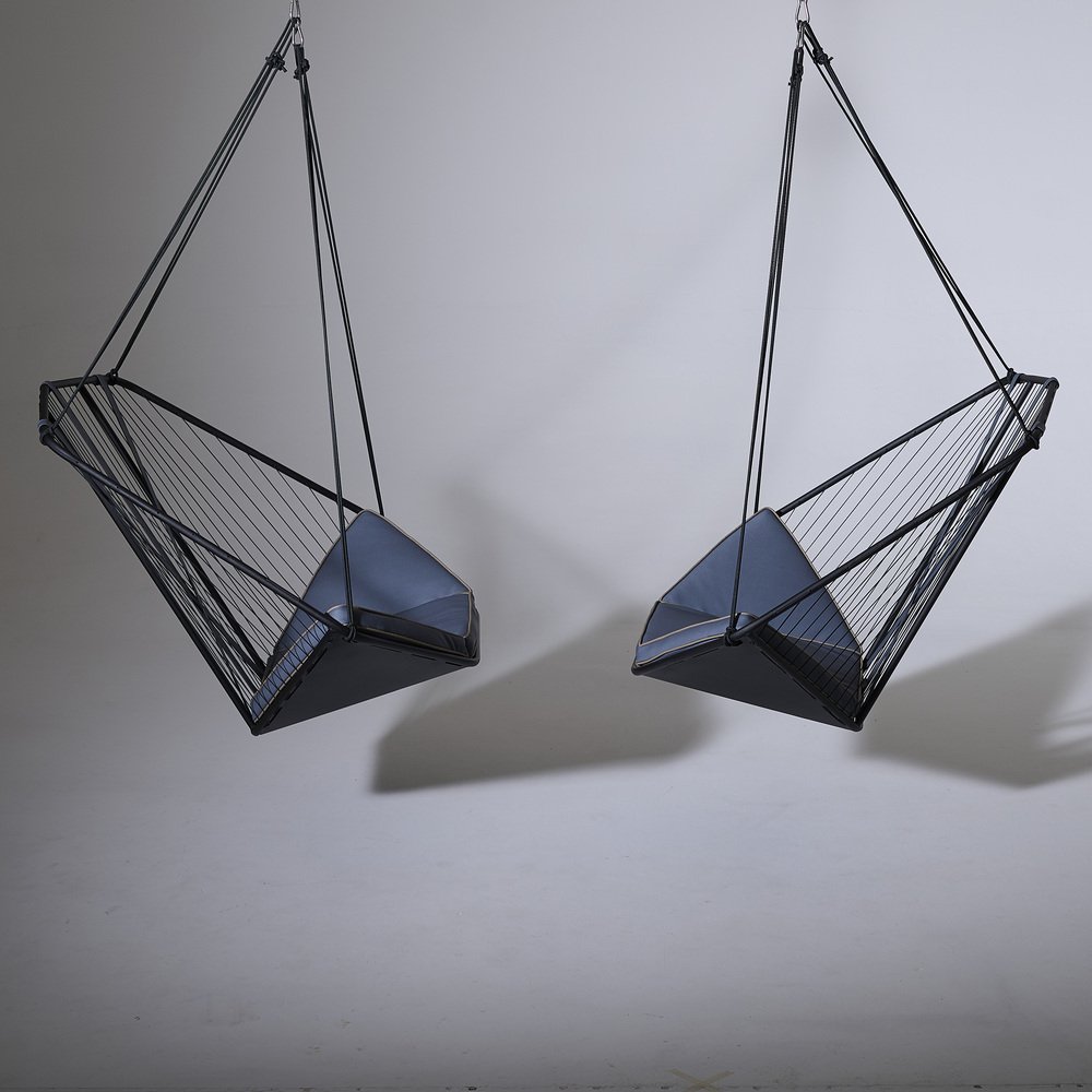 der Studio Stirling AngleSeven Seat hat ein unverwechselbares Design mit einer einzigartigen Geometrie, die ungewöhnlich und einprägsam ist. Er fällt nicht nur durch sein auffälliges Aussehen auf, sondern bietet auch einen gemütlichen Ort zum Sitzen und Faulenzen, der mit Blick auf Ergonomie, hohen Komfort und Entspannung entworfen wurde. Der AngleSeven Seat ist nicht nur geräumig und elegant in seinem funktionalen Design, sondern auch für den Außenbereich gemacht. Ganz gleich, ob Sie sich für die hängende Sitzvariante mit einer speziell entwickelten Spannfeder entscheiden, die für ein sanftes Schwebegefühl sorgt, oder für den Stuhl mit Beinen, der ein geerdetes Gefühl vermittelt, dieser Stuhl verleiht jeder Umgebung im Freien einen Hauch von modernem Stil.