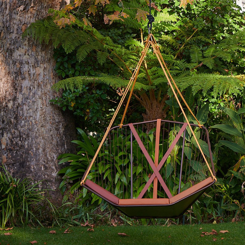The Studio Stirling AngleSeven Seat has a distinctive design with unique geometry that is unusual and memorable. Not only does it catch the eye with its striking looks, but it also provides a cozy haven for sitting and lounging, designed with ergonomics, great comfort and relaxation in mind. The AngleSeven Seat is not only spacious and elegant in its functional design, but it is made for outdoor environments. Whether you choose the suspended seat option, that has a specially designed tensioned spring, for a soft floating sensation or the chair with legs for a grounded feel, this chair adds a touch of modern style to any outdoor environment or setting.