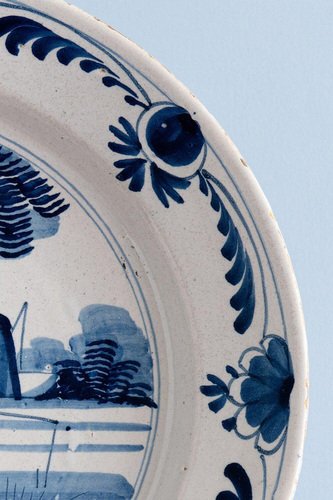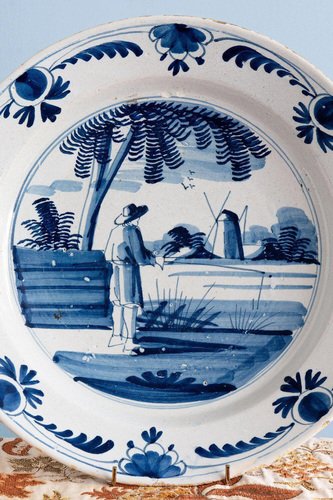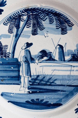 Niederländische Blau-Weiße Schale mit Country Szene von Delftware