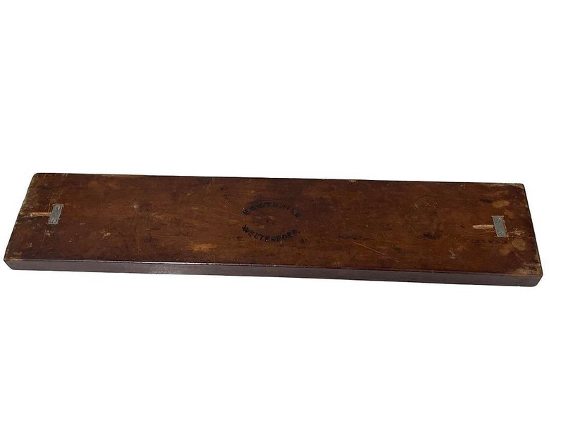 Eine hölzerne Lebkuchenform aus dem 19. Jahrhundert Eine hölzerne Form zur Herstellung von Keksen in Form von königlichen Kronen, die von K.H. Wennink in Westendorp, Bäcker von Beruf, Ende des 19. Jahrhunderts hergestellt wurde. Die Form wurde zur Herstellung von Keksen in Form von Kronen für den Prinzessinnentag oder den Königinnentag verwendet. Der Prinzessinnentag (1885-1890) und der Königinnentag (1891-2013) sind seit der Regierungszeit von Königin Juliana ein nationaler Feiertag im Königreich der Niederlande zu Ehren des Geburtstags des Staatsoberhauptes. In allen Teilen des Königreichs gilt dieser Tag als freier Tag für die meisten Arbeitnehmer und wird mit verschiedenen Feierlichkeiten begangen. Die Maße sind 55 cm lang, 12 cm breit und 2,5 cm tief. Das Gewicht beträgt 804 Gramm.