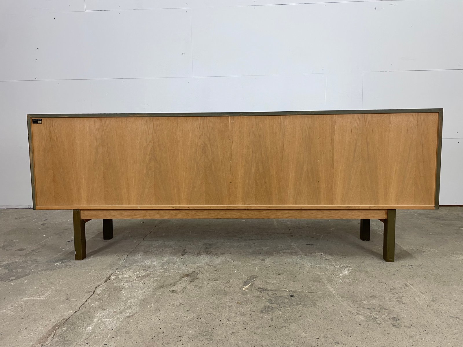 Elegantes niedriges Sideboard, entworfen und hergestellt von Omann Junior (Omann Jun Møbelfabrik) in Dänemark in den 1960er Jahren. Dieses Möbelstück repräsentiert das klassische dänische Design der Mitte des Jahrhunderts, das sich durch klare horizontale Linien, ausgewogene Proportionen und raffinierte Handwerkskunst auszeichnet.