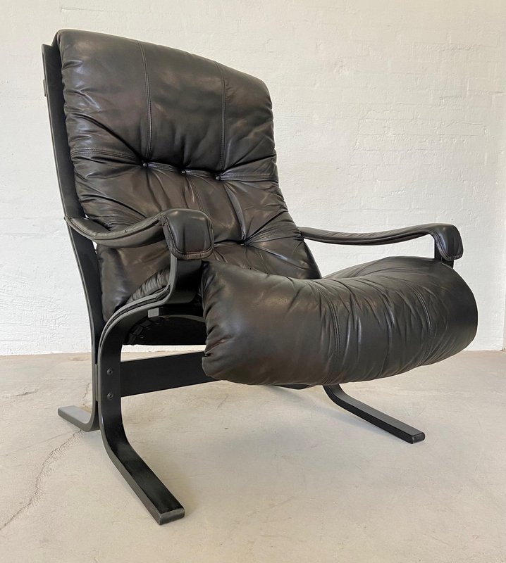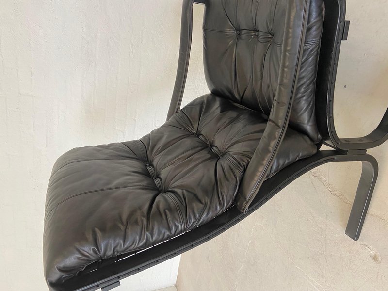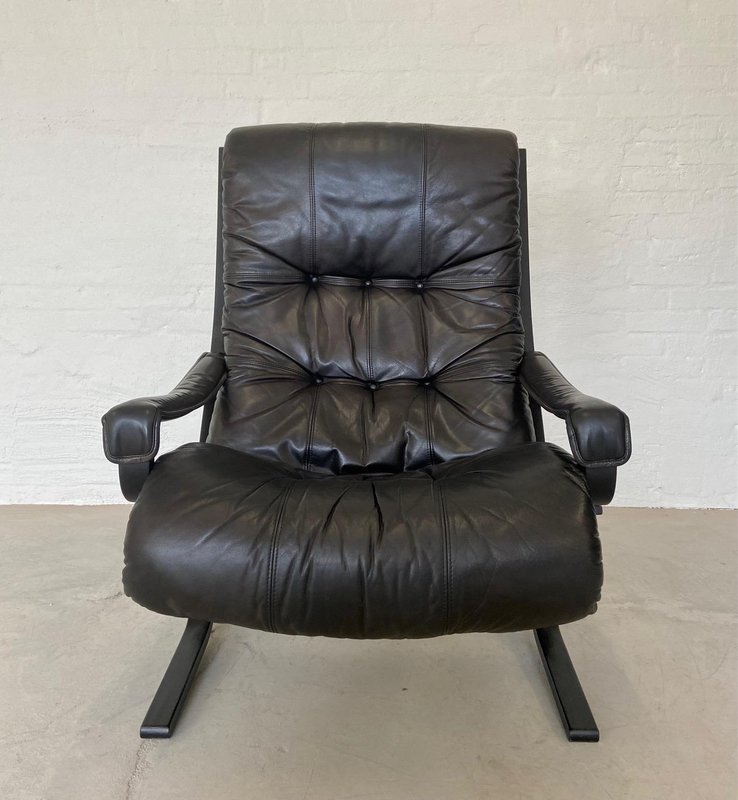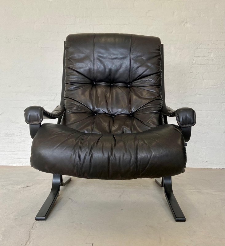Norwegischer Vintage Ledersessel & Fußhocker von Ingmar Relling