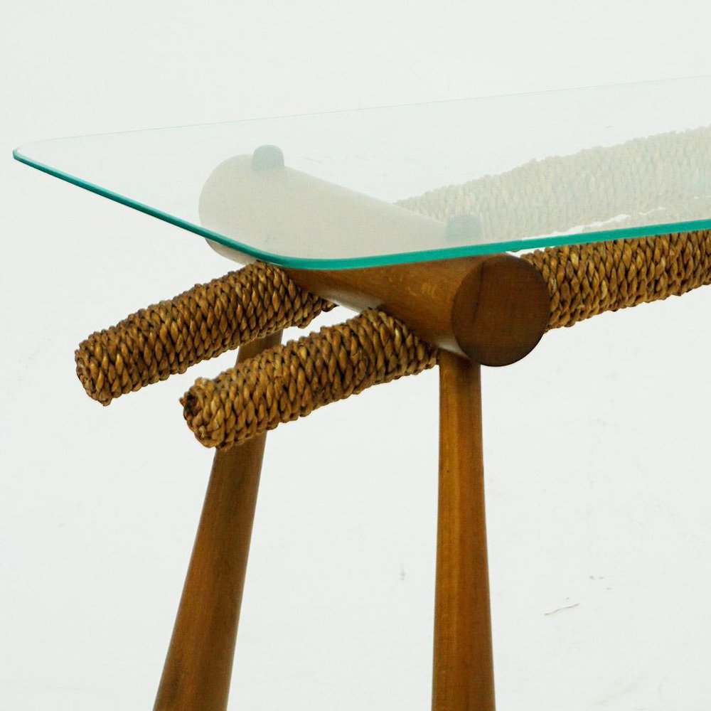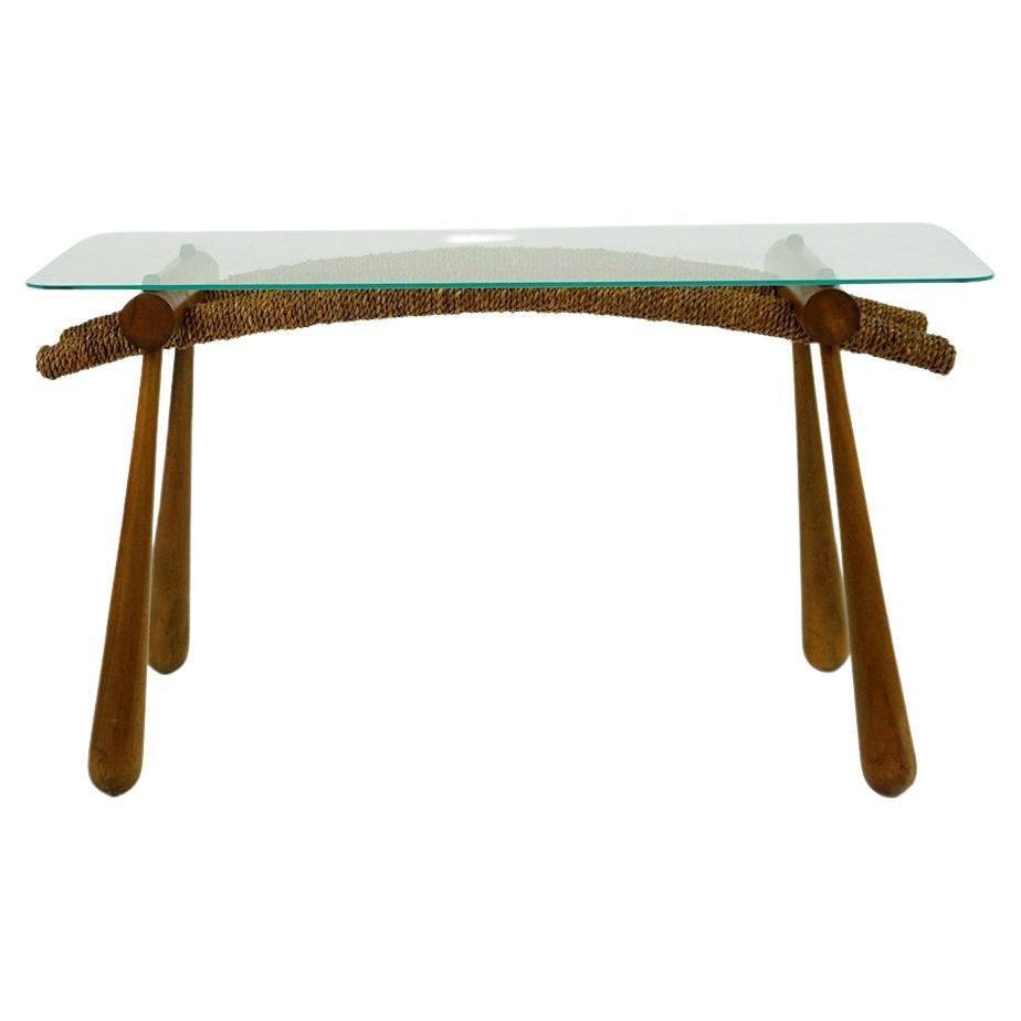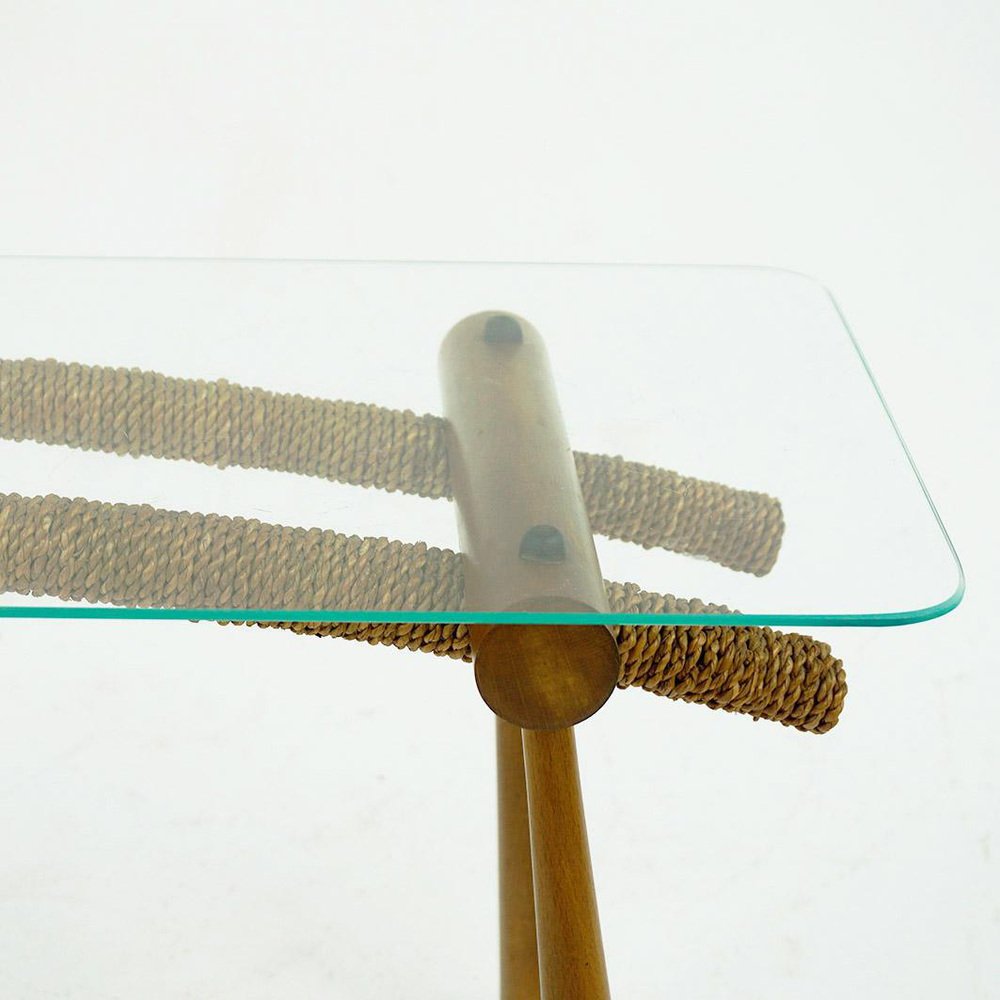 Österreichischer Mid-Century Beistelltisch aus Buche mit Kordel & Glasplatte von Max Kment, 1950er