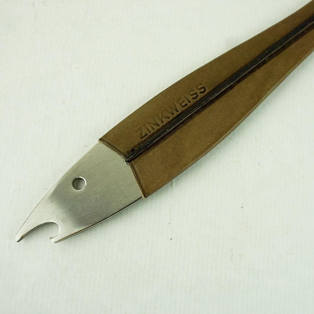 Österreichischer Mid-Century Neptun Fisch Flaschenöffner aus Stahl & Leder von Carl Auböck, 1960er