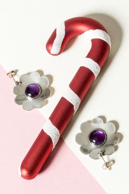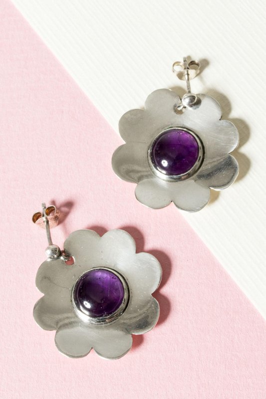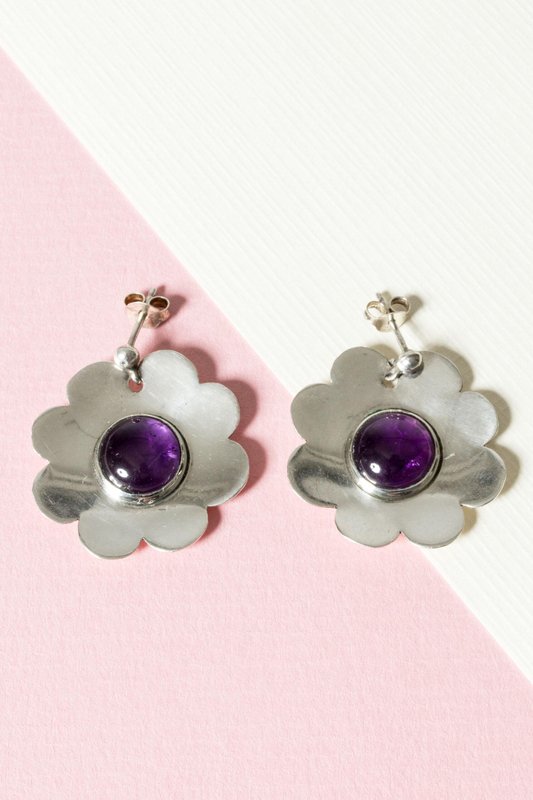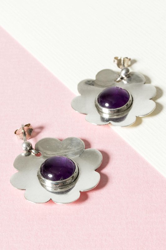 Ohrringe aus Silber & Amethyst von Bengt Liljedahl, 1950er, 2er Set