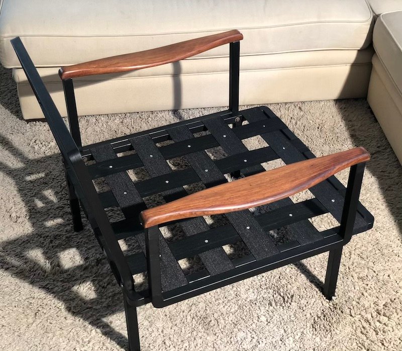 Asko zugeschriebenes Set aus Holzsessel und Ottomane, 1965