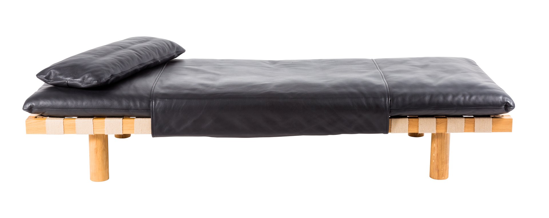 Pallet Tagesbett 4400LB-ON aus schwarzem Leder und Naturholz von Sebastian Herkner für Pulpo