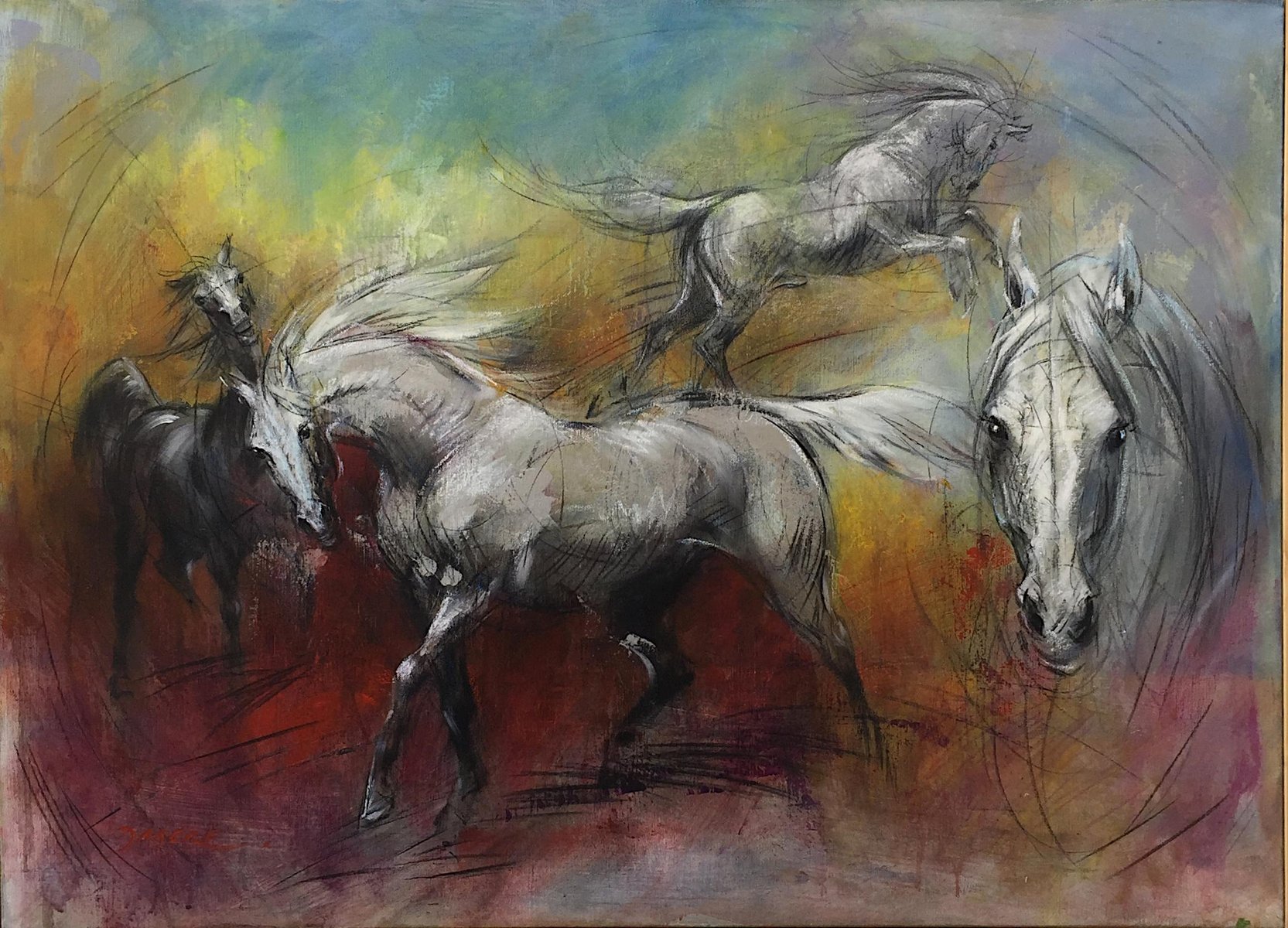 Mixed media on canvas Pascal Dabere is a French artist born in 1957 who lives & works in Amboise, Indre-et-Loire, France. At 17 years old, he was spotted by Dargaud Editions and works for Morris, the creator of Lucky Luke. He achieved his artistic studies rue Lepic in Paris with the sculptor Del Debbio. Since 1990, he devoted his time for the painting & pastels to become later Master in pastel with Sociétés des Pastellistes de France. In addition, his art is featured in publications such as Nouvelle République, Ouest France, etc. Dabere describes his artistic practice as being born out of a need to "translate life". His distinctive figurative and expressive style is translated through acrylics and oils on canvas or linen.