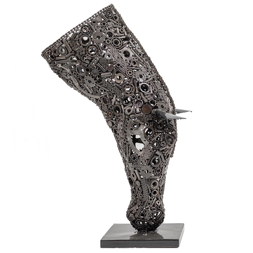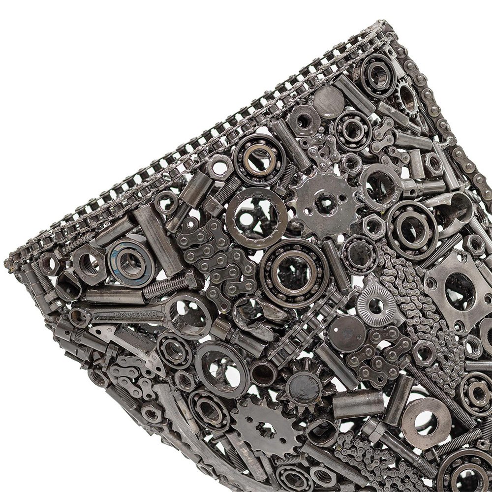 Details: 96 cm x 60 cm x 39 cm (37,7" x 23,6" x 15,3") Handgefertigte Skulptur aus recyceltem Eisen Industrielle Metallkunst Schutzbeschichtung auf Epoxidbasis Einzigartig