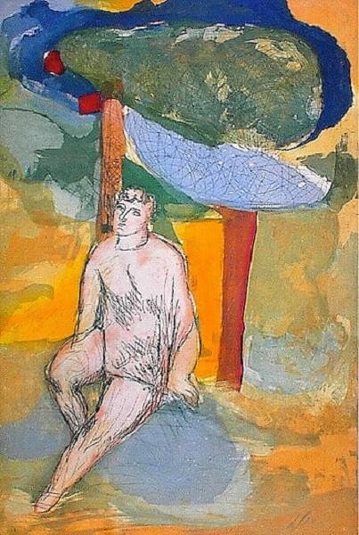 After studying at the Institute of Arts, Sandro Chia enrolled at the Academy of Arts of Florence, graduating in 1969. He traveled to India, Turkey and throughout Europe before settling in Rome in 1970. He continues to work in the conceptual field, making several exhibitions in Rome and Europe in the 70s. After obtaining a scholarship from the city of Mönchengladbach in Germany, he worked there from September 1980 to August 1981, when he moved to New York. In 1985, he participated in the Biennale de Paris. Today, his activities are divided between New York, Rome and Montalcino. Sandro Chia likes representing man in its most carnal aspects. The figure of the hero can be found throughout all of his work. Inspired by classic Italian art, he stresses the robustness of his models to put special emphasis on the human figure never involved in a defined context. His mastery of various techniques such as dry point, etching, lithography and aquatint offers him a great variety in the rendering of his expressions. The artwork Le Couple aux raisins(1990) is associated with the ad for the wine Château Lynch-Bages.