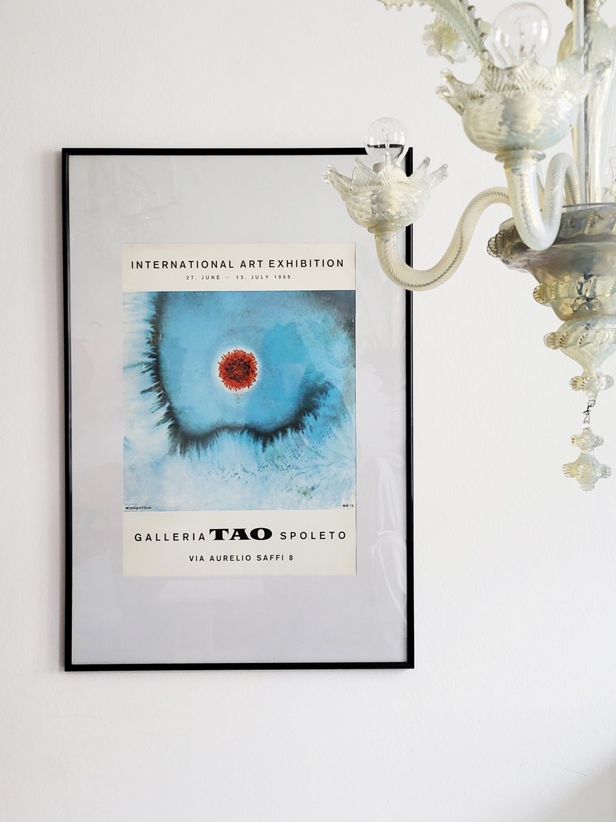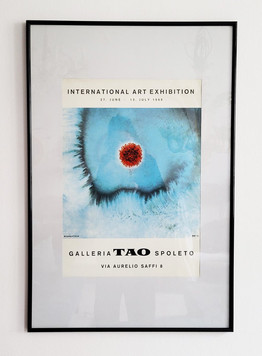 Original 1960s art exhibition opening poster for Gallery Tao, formerly located inside Palais Palffy, Vienna. High-quality print, framed, from 1969, very good condition with lightest patina.