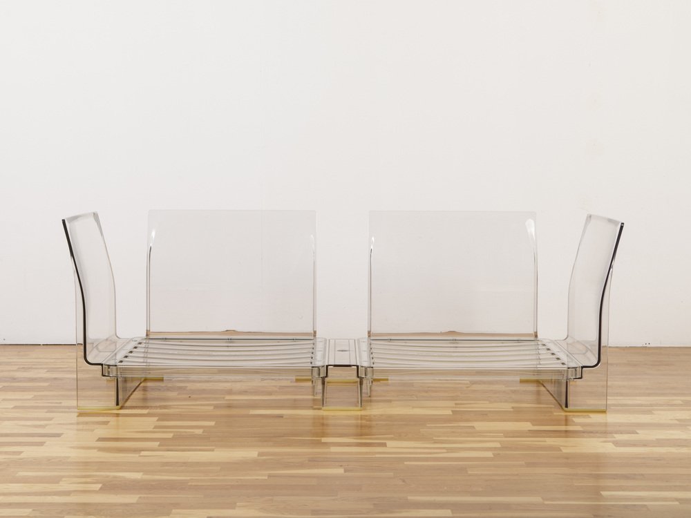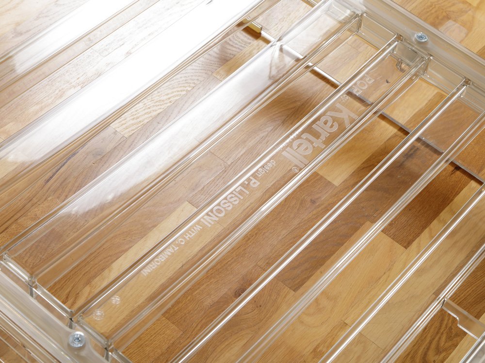 Kartells Status in der Designgeschichte erreichte ein neues Level, als die Designs des Unternehmens 1972 in die legendäre Ausstellung Italy: The New Domestic Landscape im Museum of Modern Art in New York aufgenommen wurden. Kartells Plastikstücke passen perfekt neben futuristische Schönheiten von Designern und Studios wie Archizoom, den Castiglioni Brüdern, Vico Magistretti, Gaetano Pesce, Ettore Sottsass und Superstudio, die alle ebenfalls in dieser Ausstellung der Avantgarde vertreten waren.