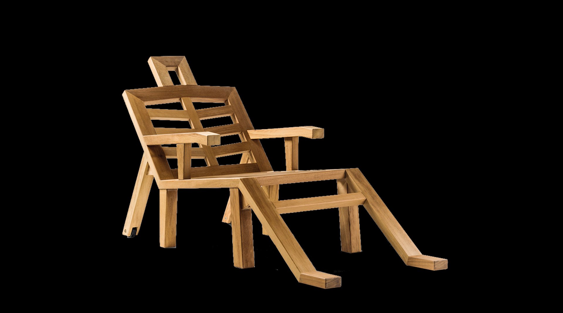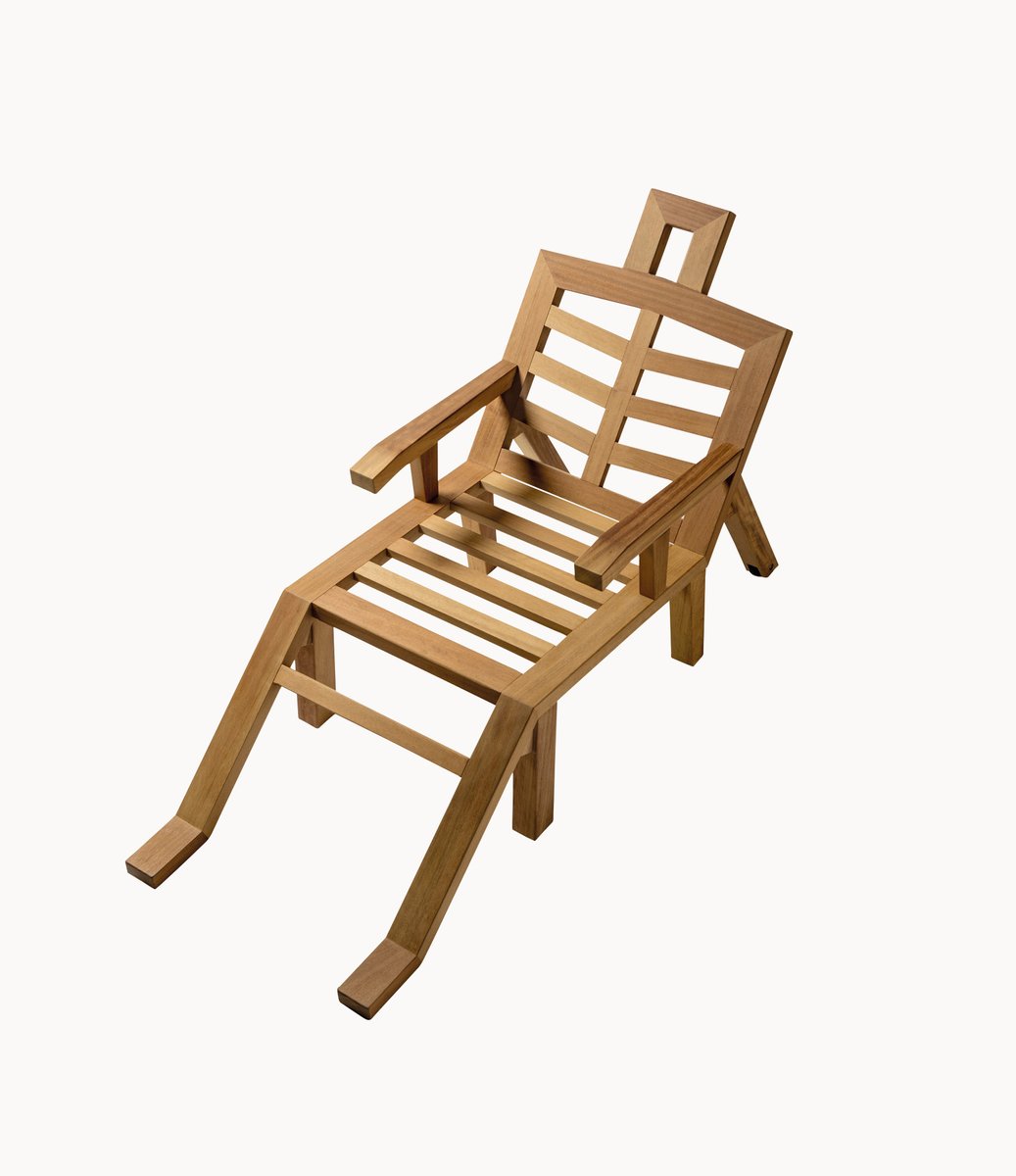 Dalí’s original Portlligat was made in 1962 from olive tree wood for him and his wife Gala’s home in Costa Brava, Spain. This reproduction is available in Iroko wood which is resistant to changes in heat and moisture content, and optional upholstery for outdoor use. It resembles a body: it has a head, torso, ribs, arms, hands, legs and feet. The visible grain and unified structure present a strong and meaningfully arranged, figurative piece.