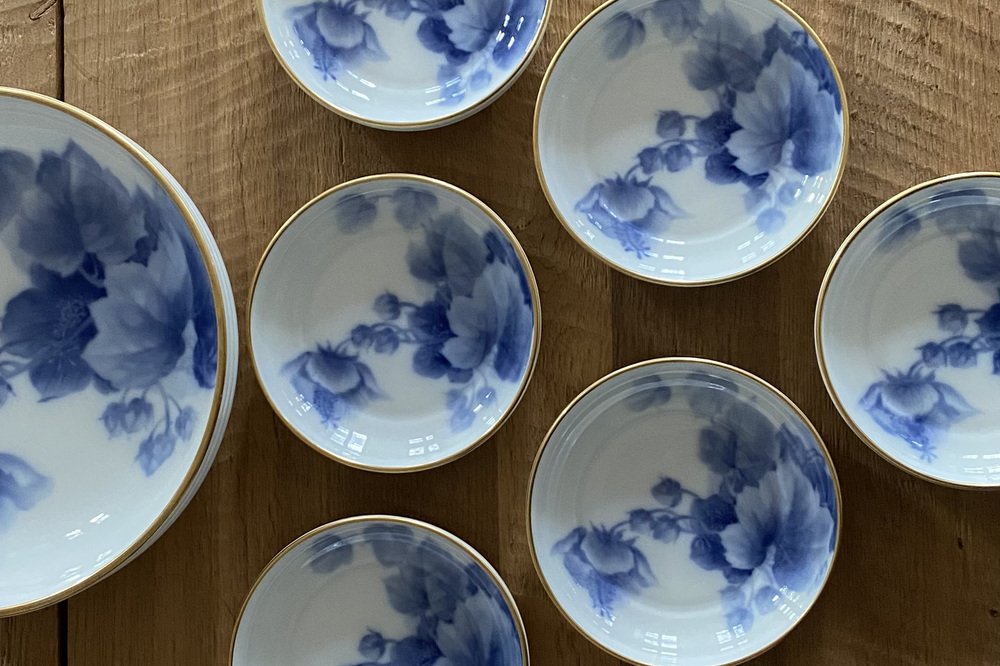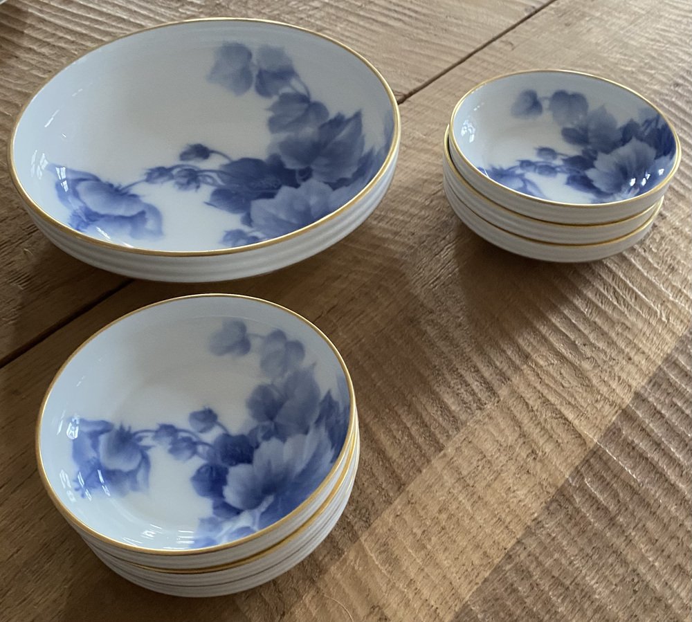 Porzellanschalen mit Servierschale, Okura, Japan, 1900er, 7 Set