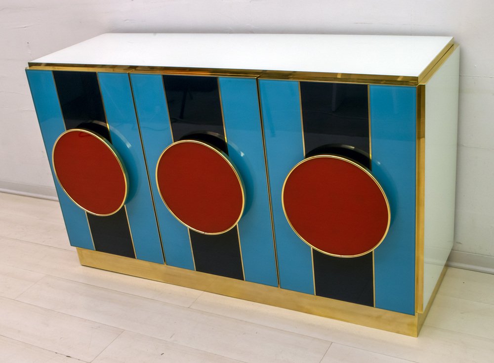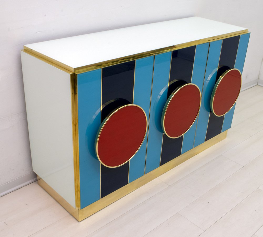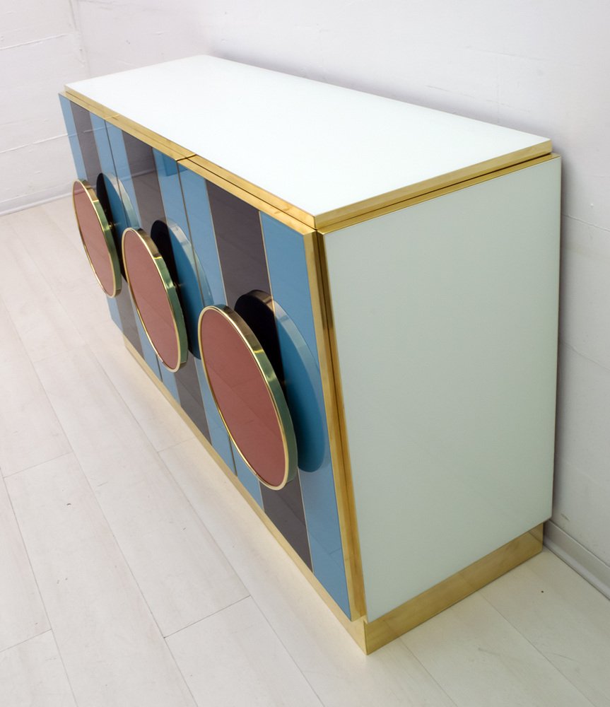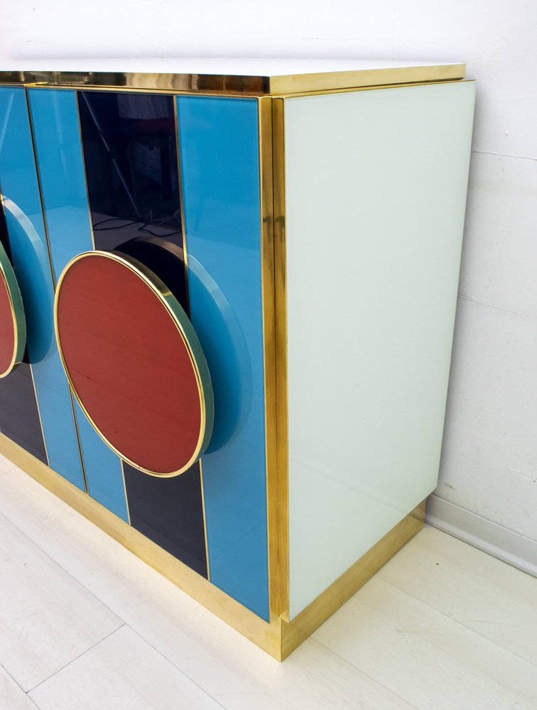 Postmodernes italienisches Sideboard aus Farbglas & Messing, 1980er