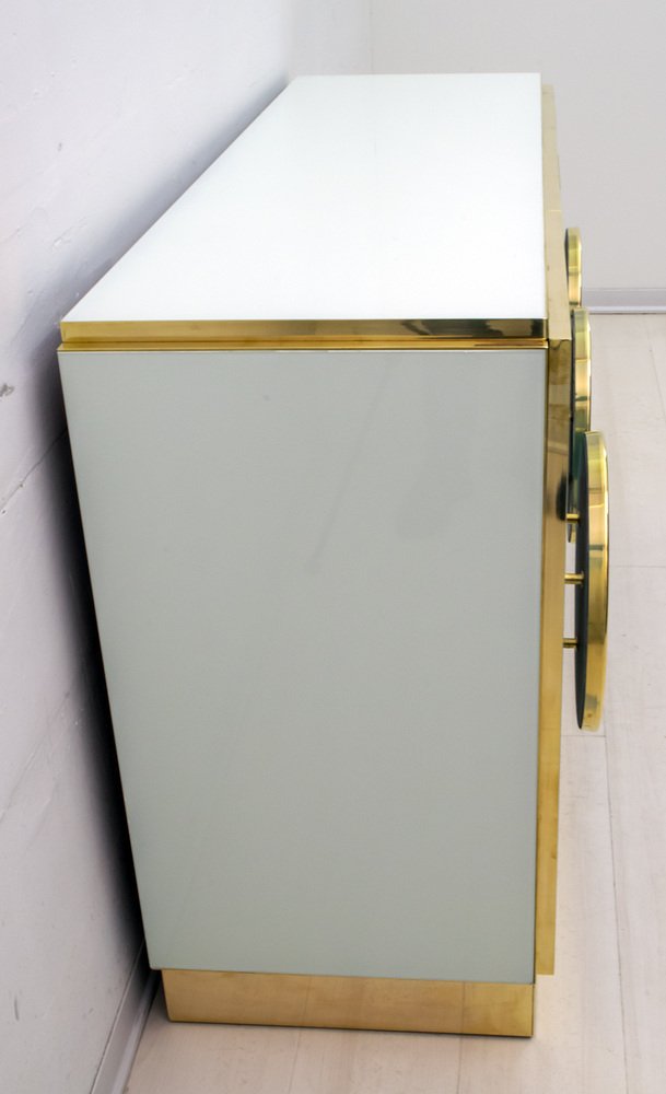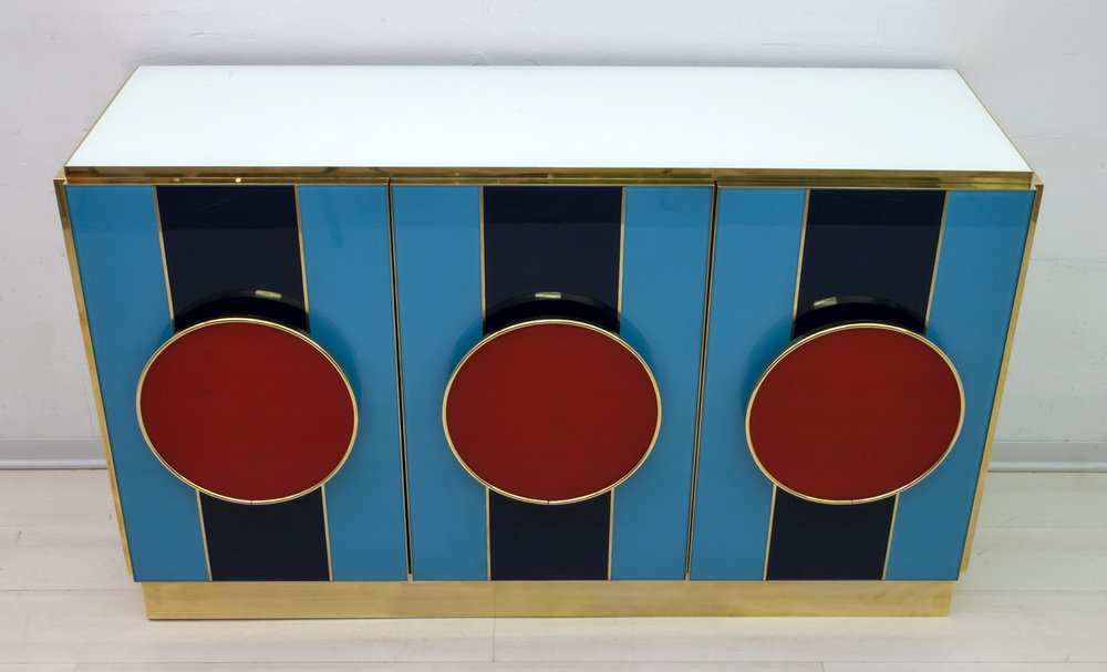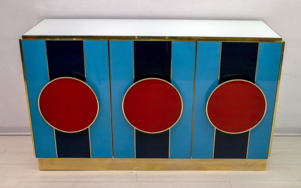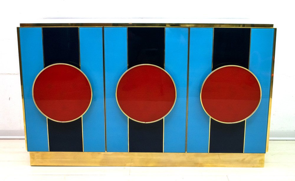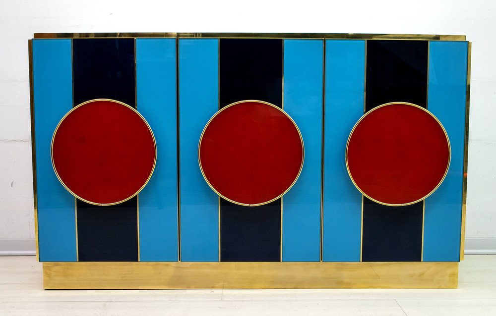 Postmodernes italienisches Sideboard aus Farbglas & Messing, 1980er