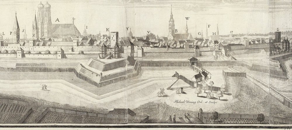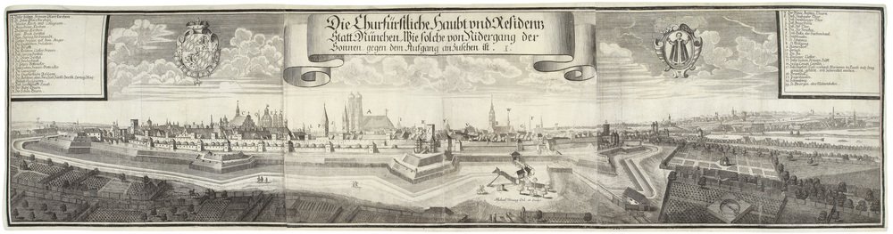 "Die Churfürstliche Haubt und Residenzstatt München, Wie solche von Nidergang der Sonnen gegen den Aufgang anzusehen ist"