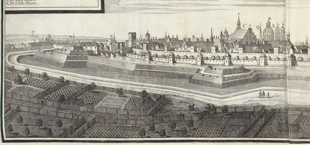 This plate was published the year that the War of the Spanish Succession (1701-14) started. The defensive walls shown here initially deterred the Duke of Marlborough from attacking the city, but his victory at the Battle of Blenheim (1704) broke the Bavarian army.
