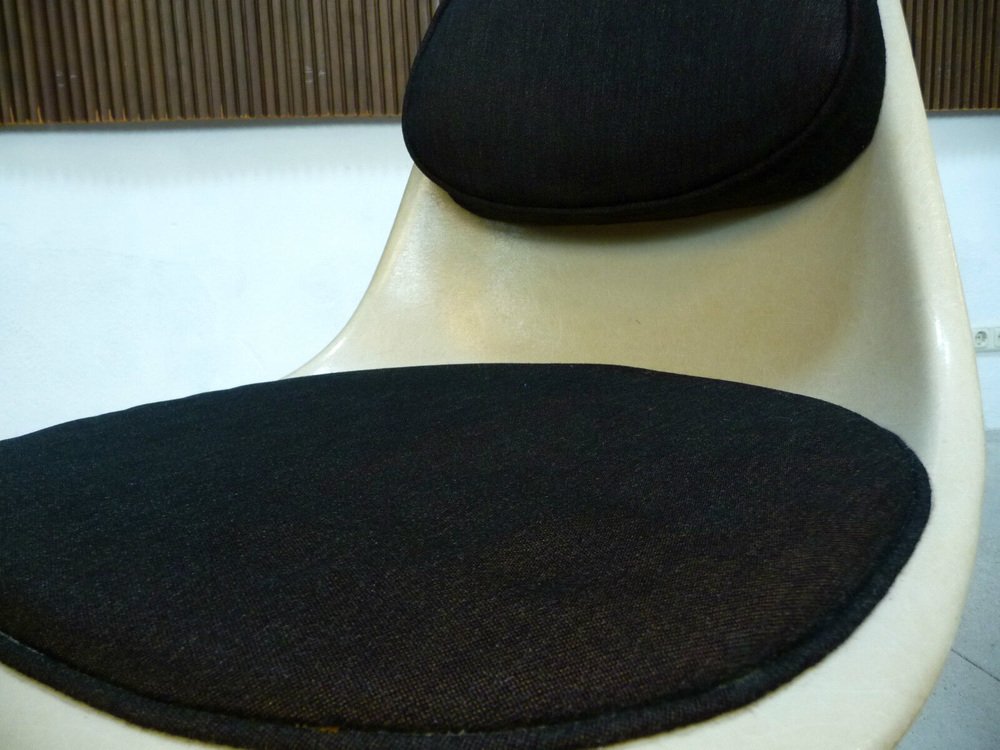 an den Holzmöbeln, die 1940 den Wettbewerb für Organic Design in Home Furnishing des Museum of Modern Arts gewannen. Die Serie umfasste experimentell geformte Stühle aus Sperrholz.