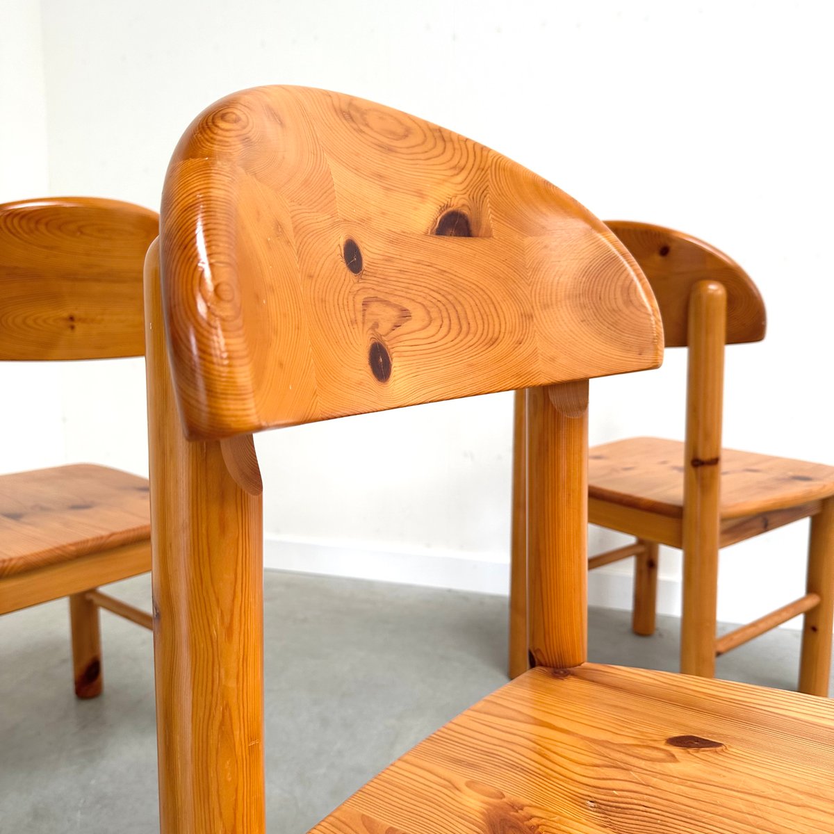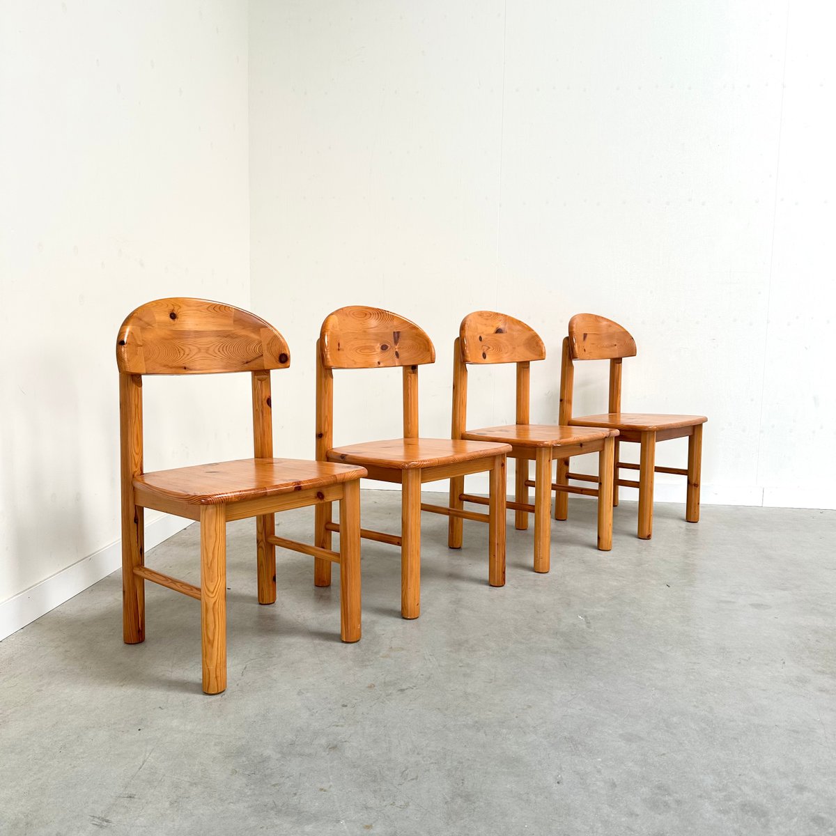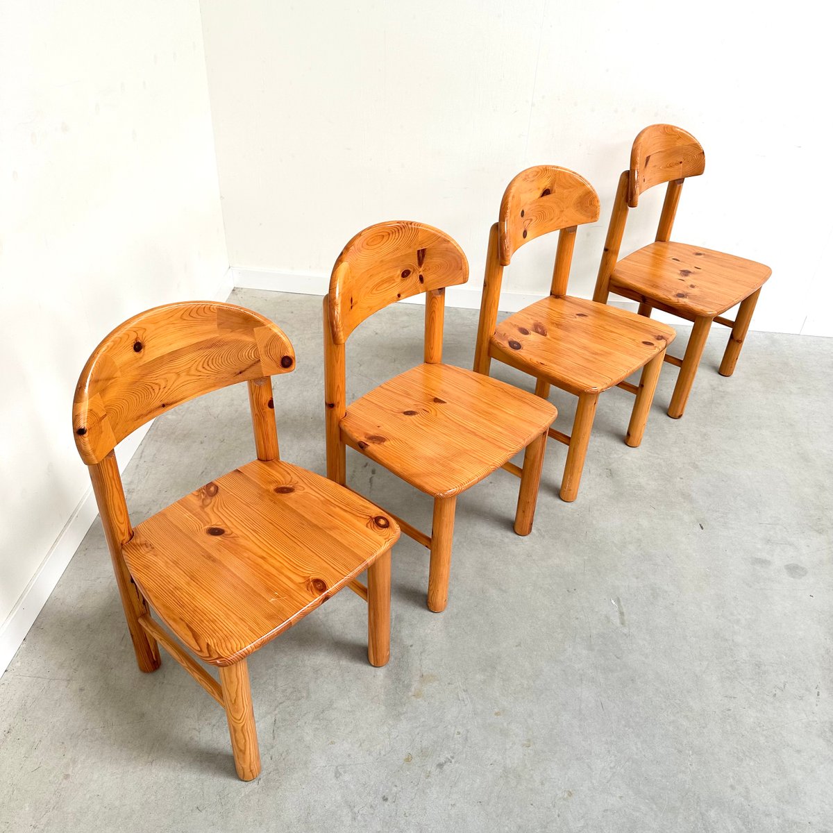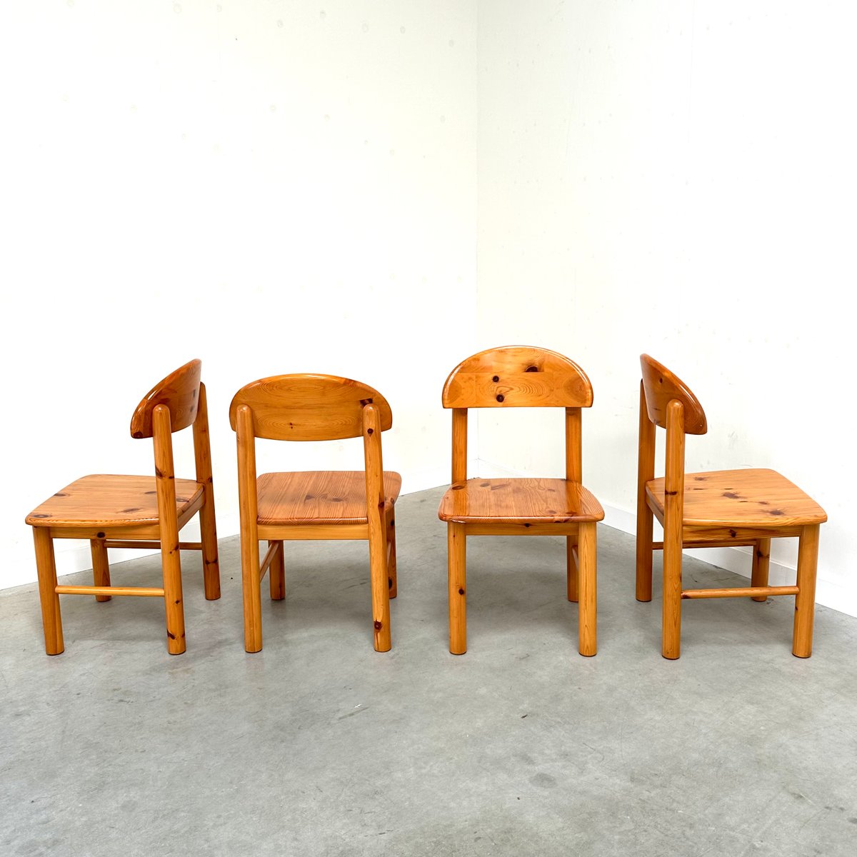 Rainer Daumiller zugeschriebene Esszimmerstühle aus Kiefernholz, 1970er, 4er Set