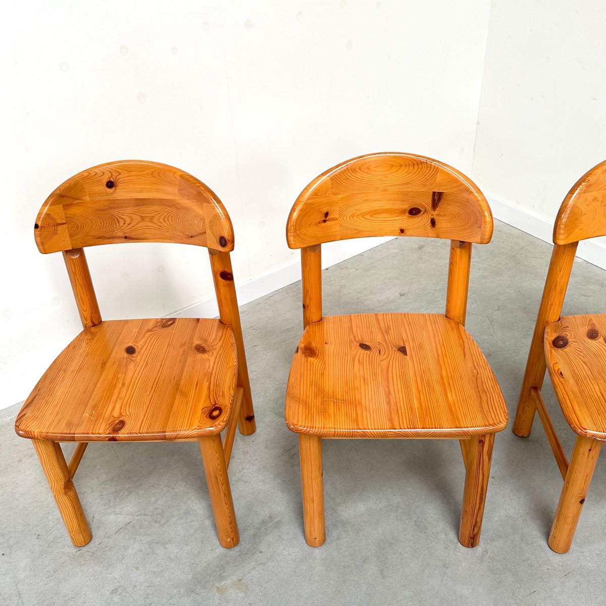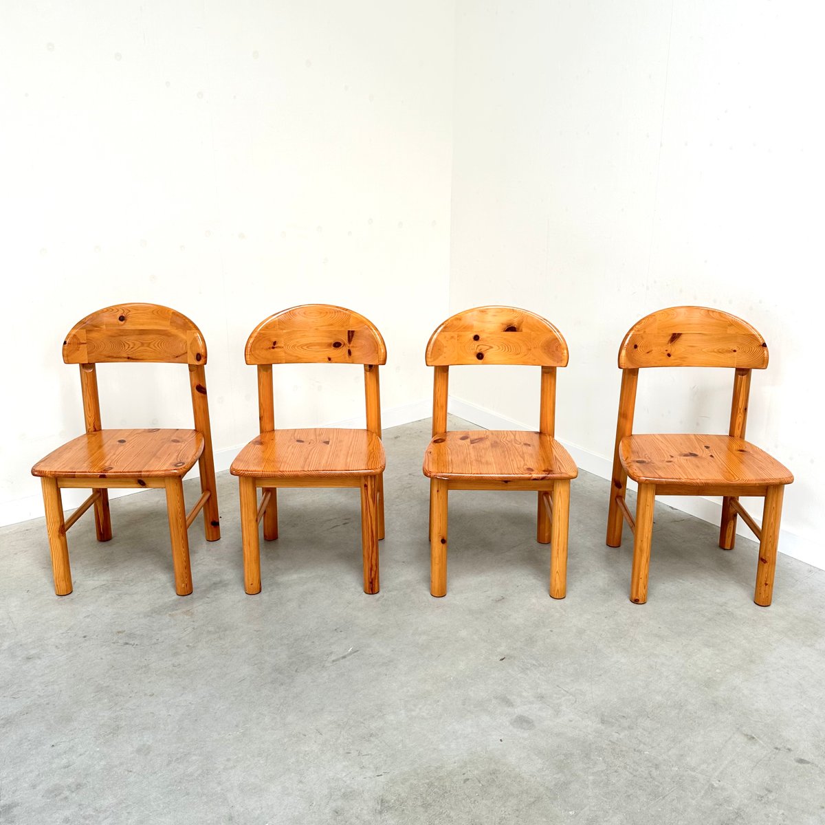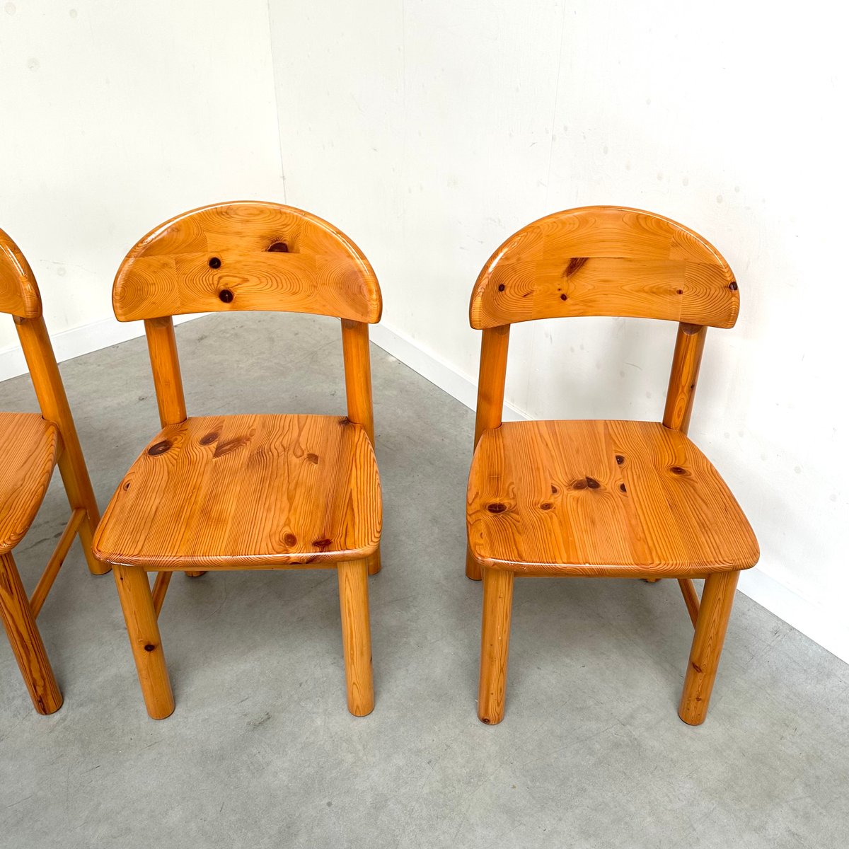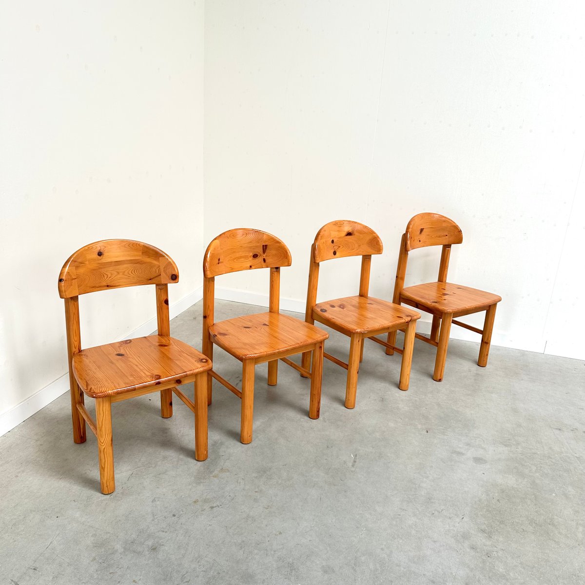 Rainer Daumiller zugeschriebene Esszimmerstühle aus Kiefernholz, 1970er, 4er Set