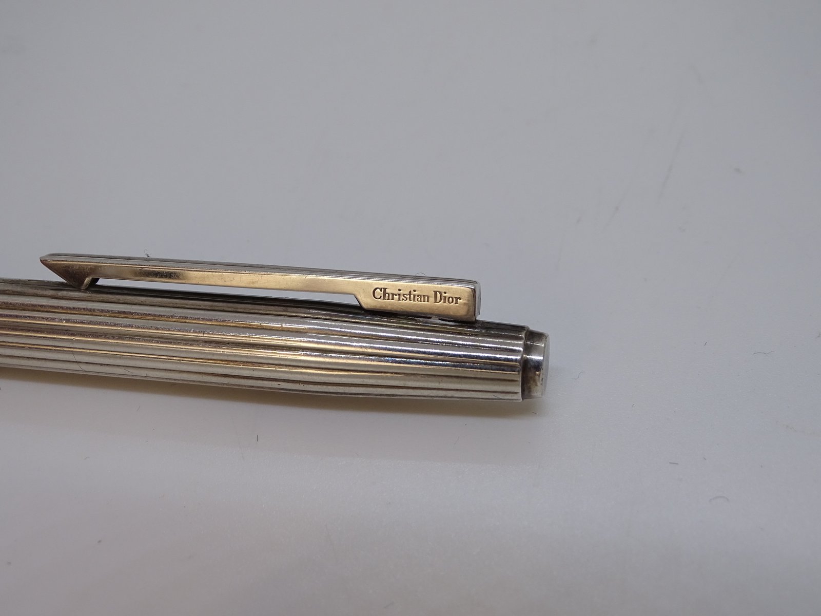 Dior grooved ballpoint pen, silver-plated metal, 1970s - France