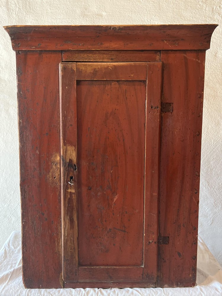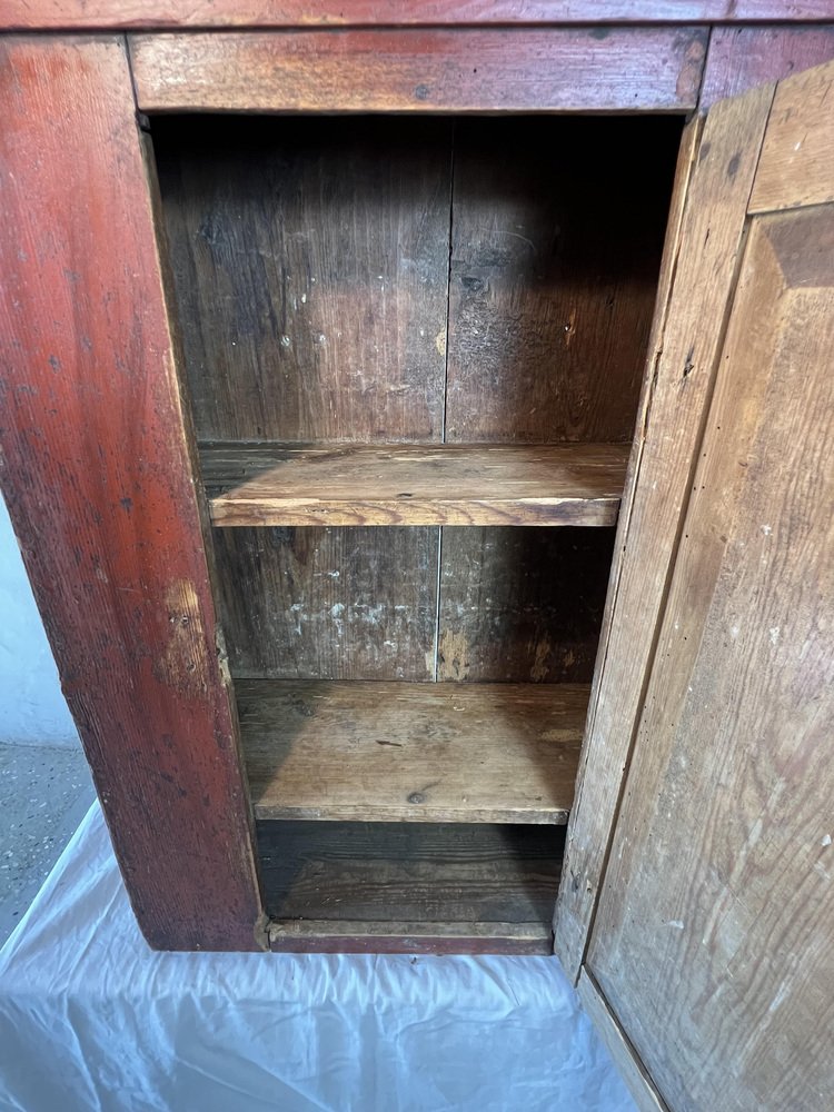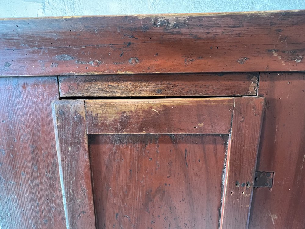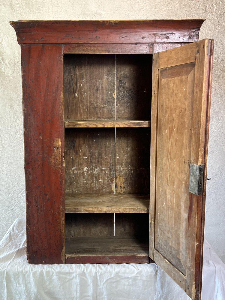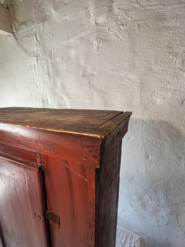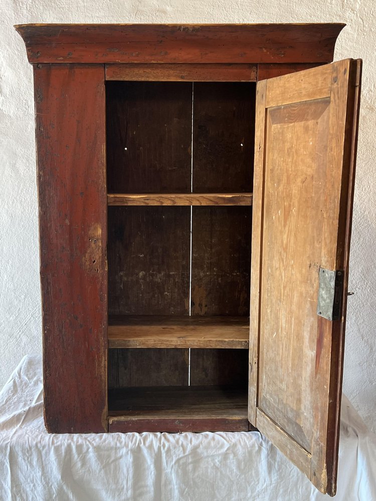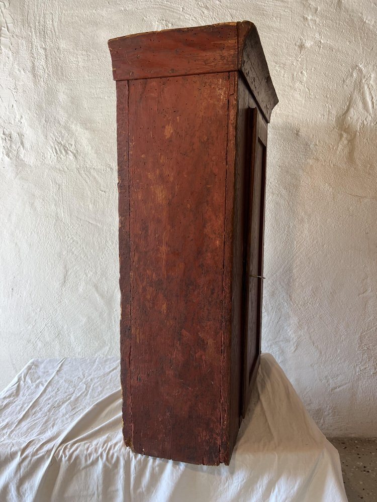 Rot patinierter schwedischer Volkskunst-Wandschrank, 19. Jh.