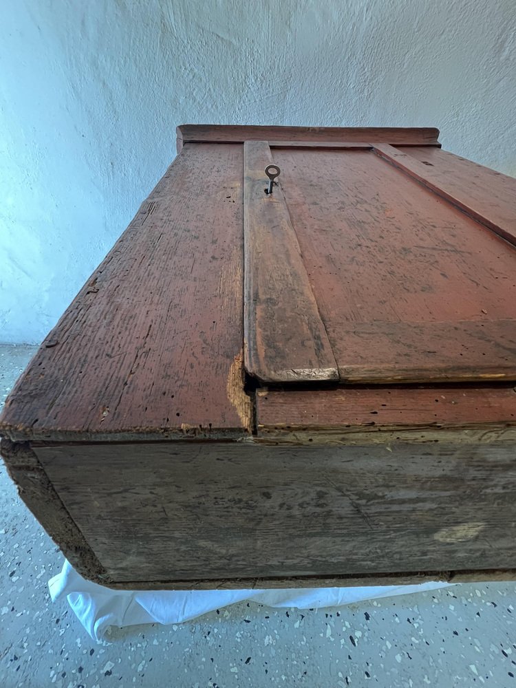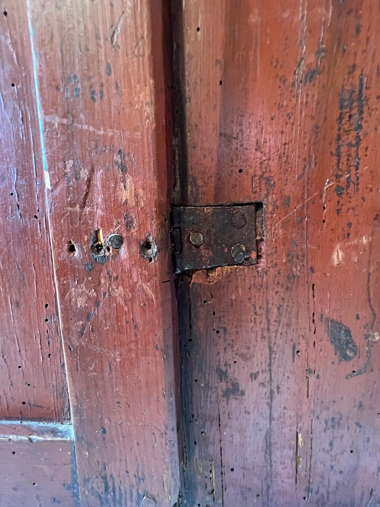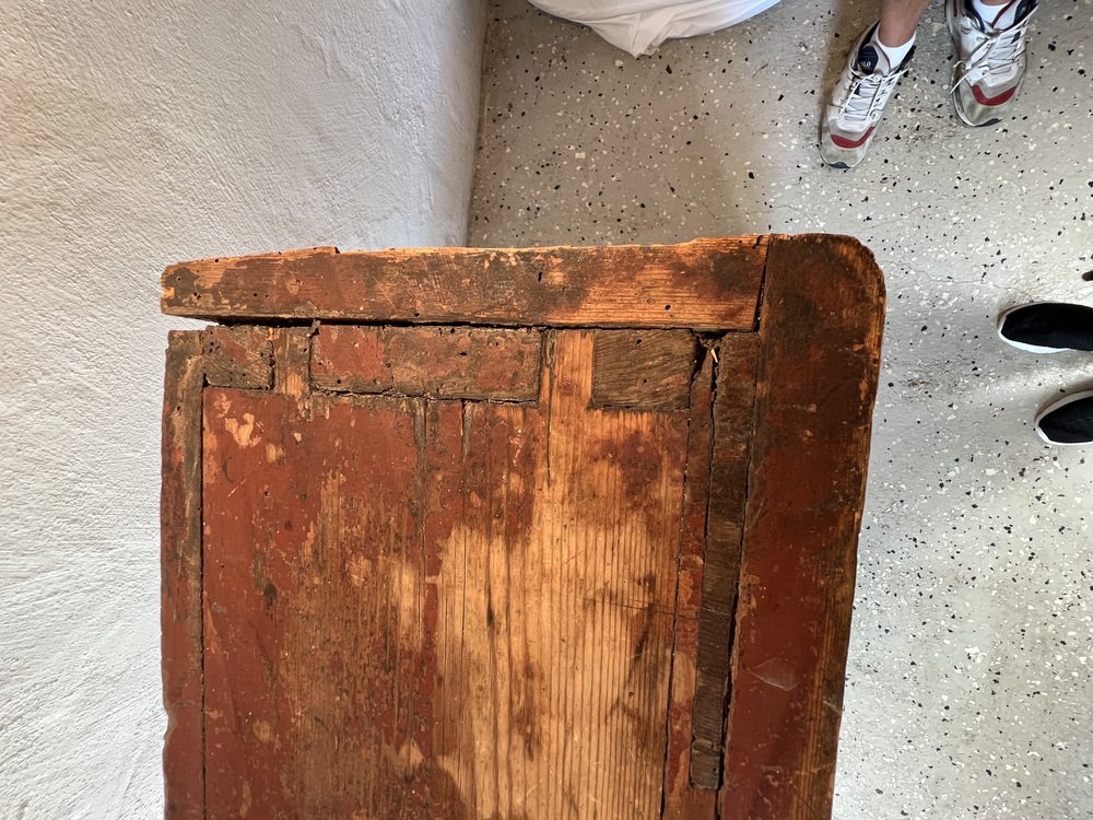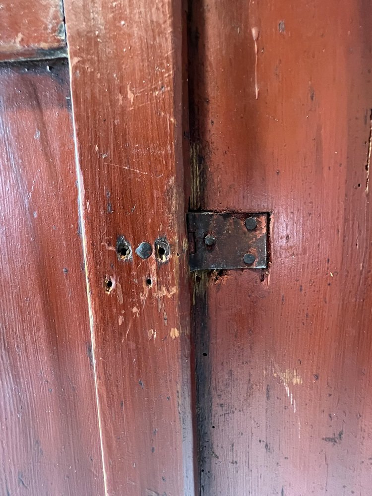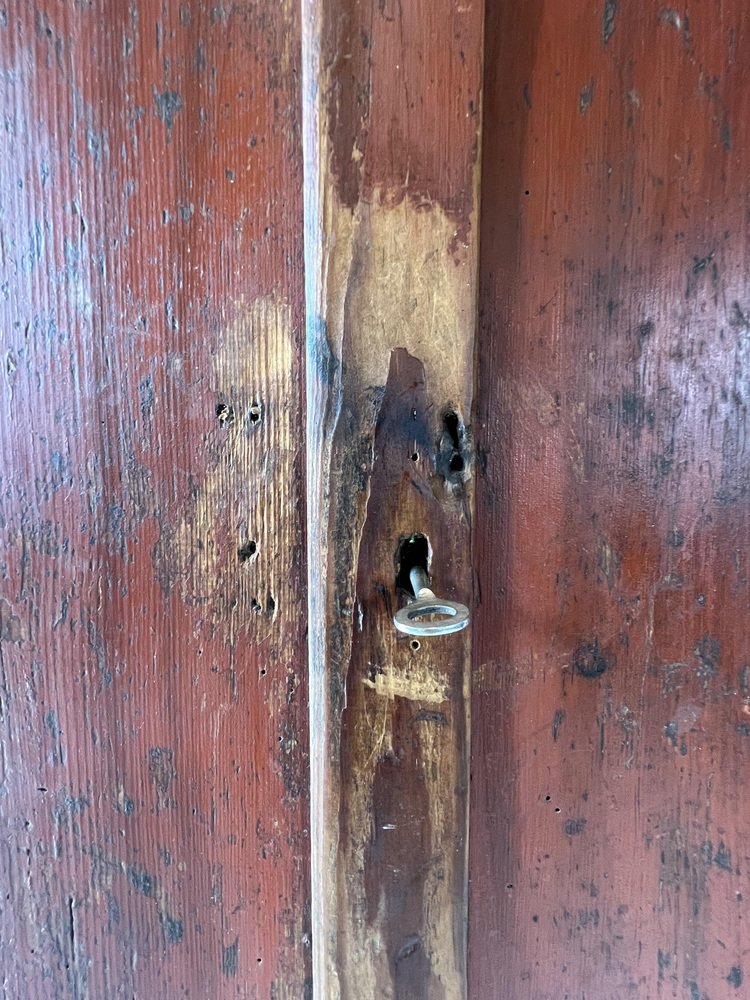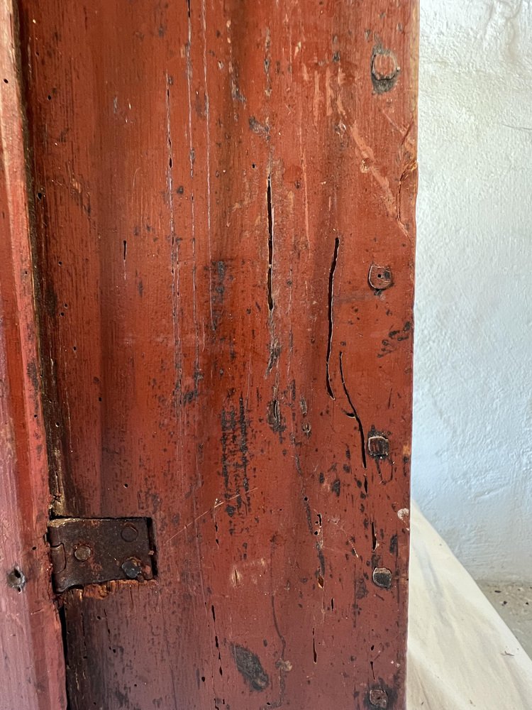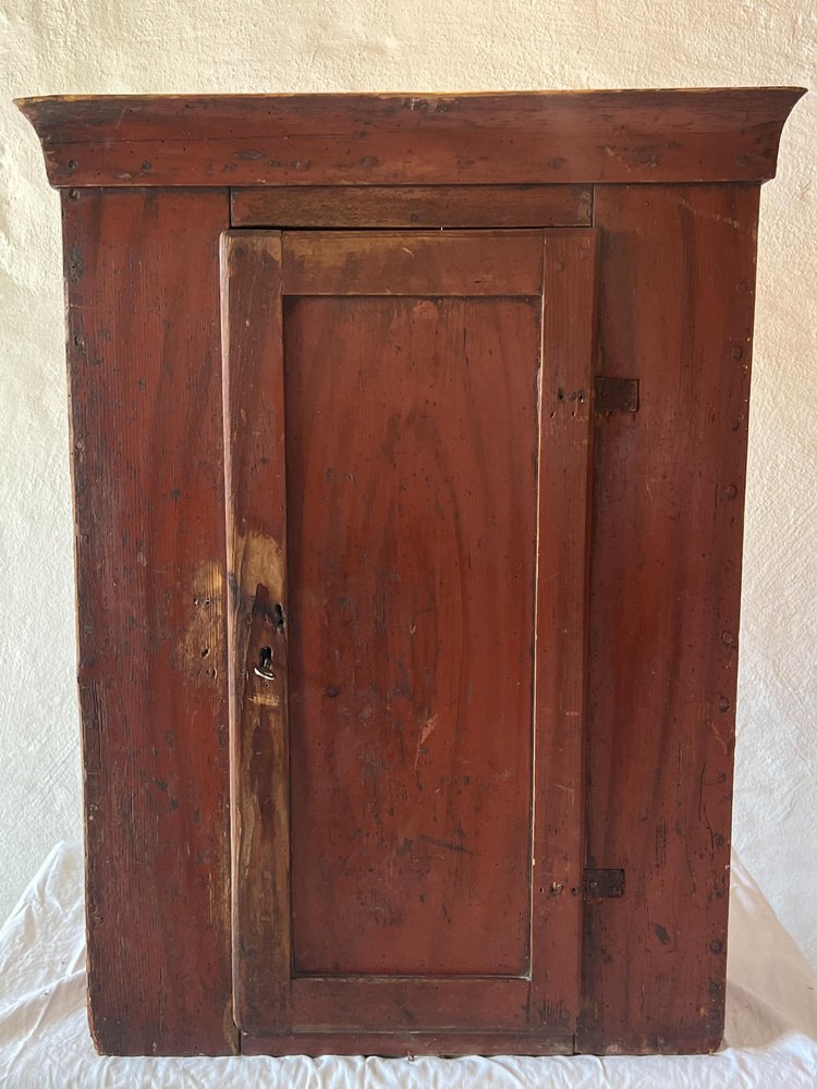 Rot patinierter schwedischer Volkskunst-Wandschrank, 19. Jh.