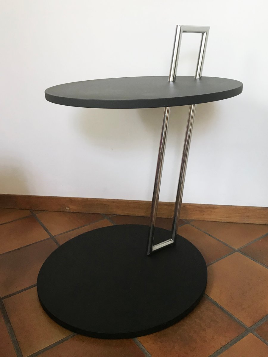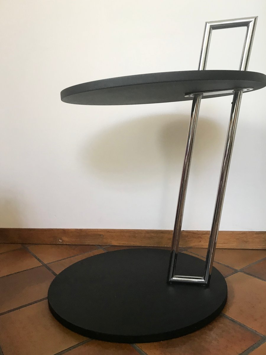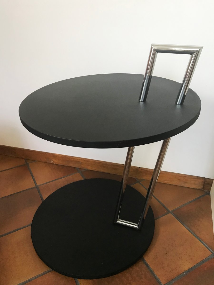 Runder Couchtisch in Schwarz & Chrom von Eileen Gray