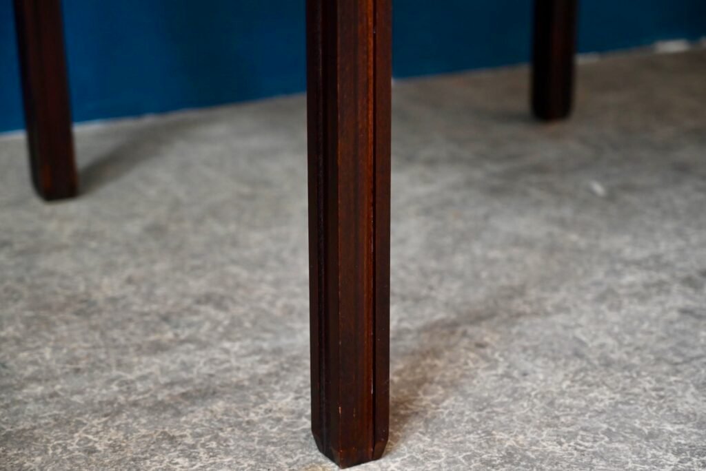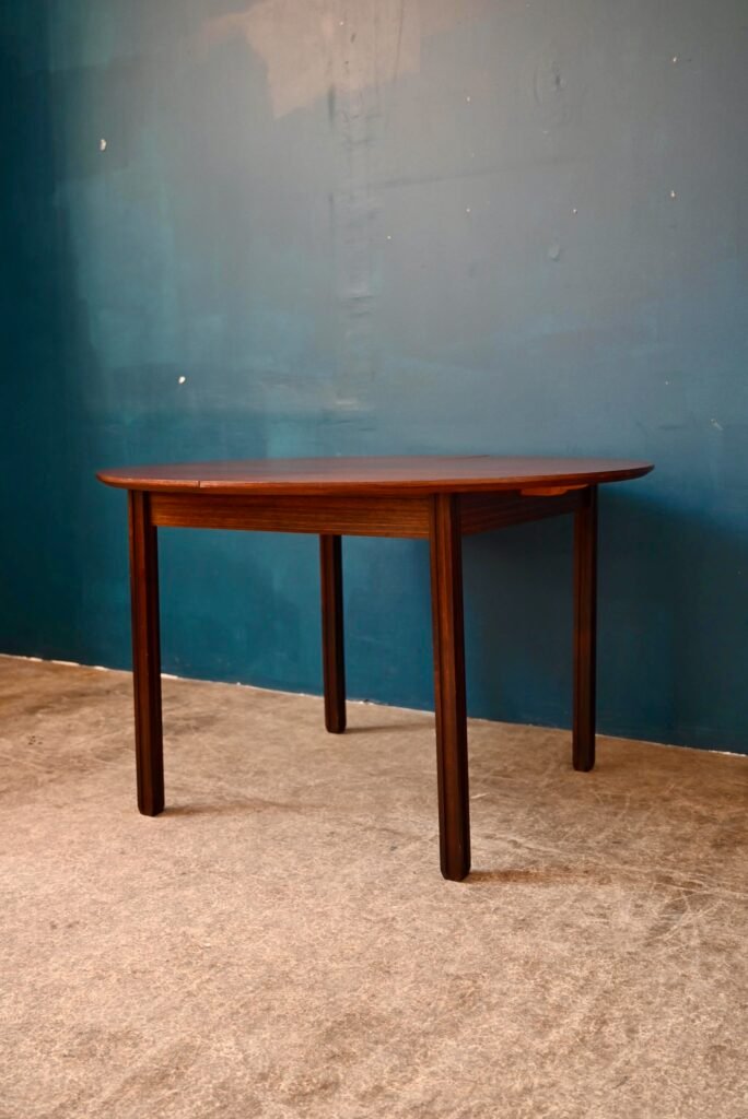 We find Italian finesse in the lines of this superb round rosewood table. The very rectilinear base offers a particular design, bringing an elegant character to this beautiful table from the 70s. The very deep color is characteristic of rosewood, elegant and ideal for highlighting colorful chairs and a beautiful ceramic in the center of the table. Round and with an integrated butterfly extension, it can accommodate 4 to 8 guests.