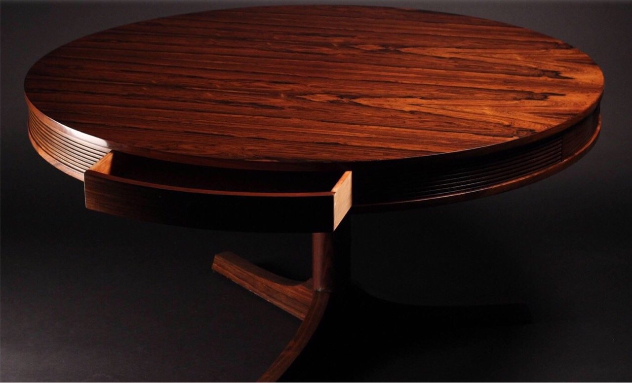 umfassen – wurden in den 1950ern und 60ern von dem nicht mehr bestehenden Hersteller Archie Shine produziert. Trotz der Bandbreite seiner Arbeiten haben viele Heritage fast ausschließlich aufgrund seiner Sideboards im Gedächtnis behalten. Obwohl sie viele der Charakteristika aufweisen, die mit modernem Mid-Century verbunden werden, zeugen Heritages Sideboards weniger von reduzierten Formen und Funktionalismus und mehr von klassischen Linien und reich gemaserten Holzarten wie Palisander, Nussbaum, indischem Lorbeerbaum oder Teak. Viele von ihnen enthalten außerdem Panele, die von seiner Frau Dorothy bemalt wurden. Unter den berühmten Modellen sind das Hamilton Sideboard (1950er) und das Knightsbridge Sideboard (1950er). Ein großer Anteil der auf dem Vintage Markt erhältlichen Arbeiten von Heritage wurde von Archie Shine produziert und von dem angesehenen Möbelgeschäft Heal’s verkauft.