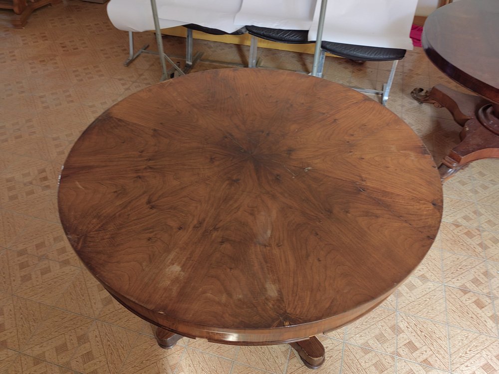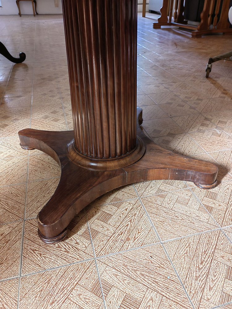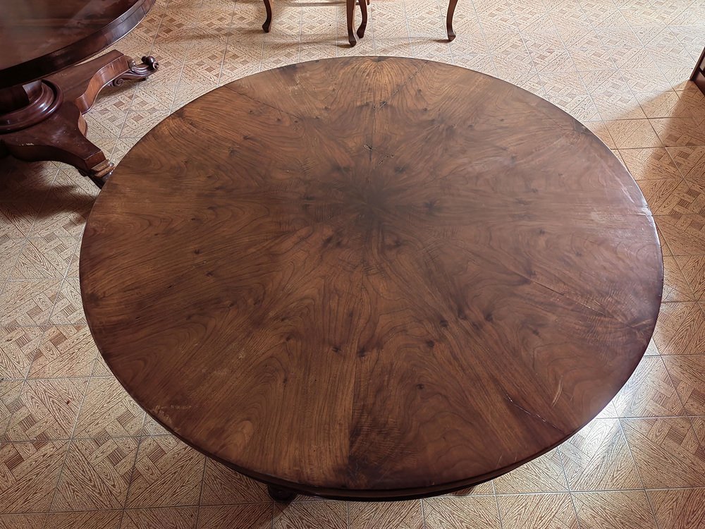 Runder Tisch aus Nussholz Wurzelholz mit Säulenfuß, Frühes 19. Jahrhundert