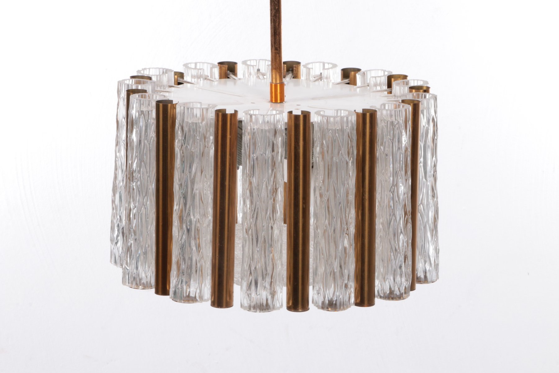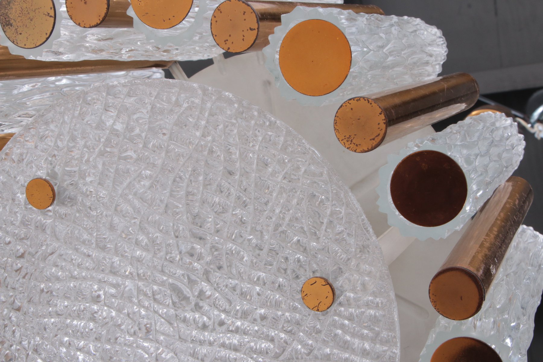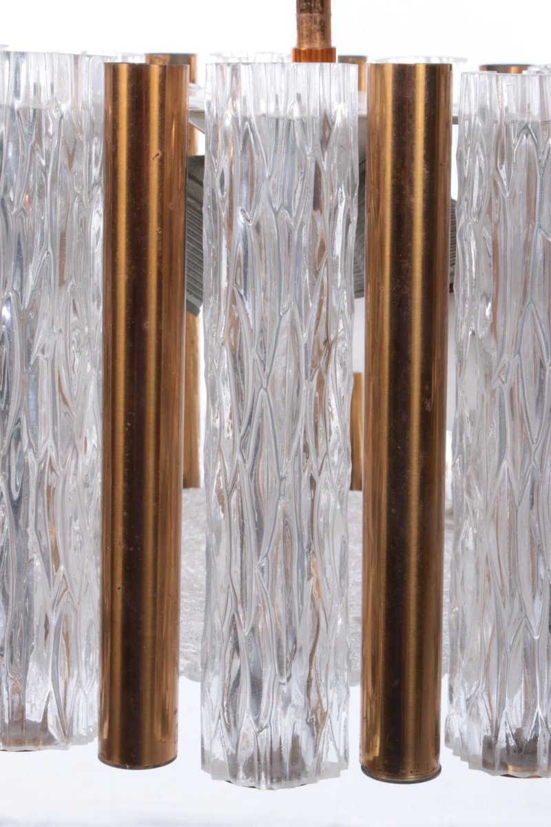 Runder Vintage Kristall Eisglas Kronleuchter von Kaiser Idell / Kaiser Leuchten, 1960er