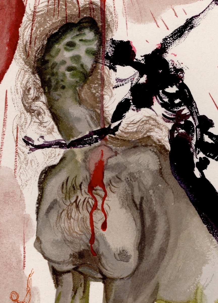 The watercolours were not published in Italy until 1964: at the Scuola Grande di San Teodoro in Venice, the publishers Adriano Salani of Florence and Arti e Scienze of Rome organised an International Art Book Exhibition, presenting the Italian edition of the Divine Comedy illustrated by Dalí.