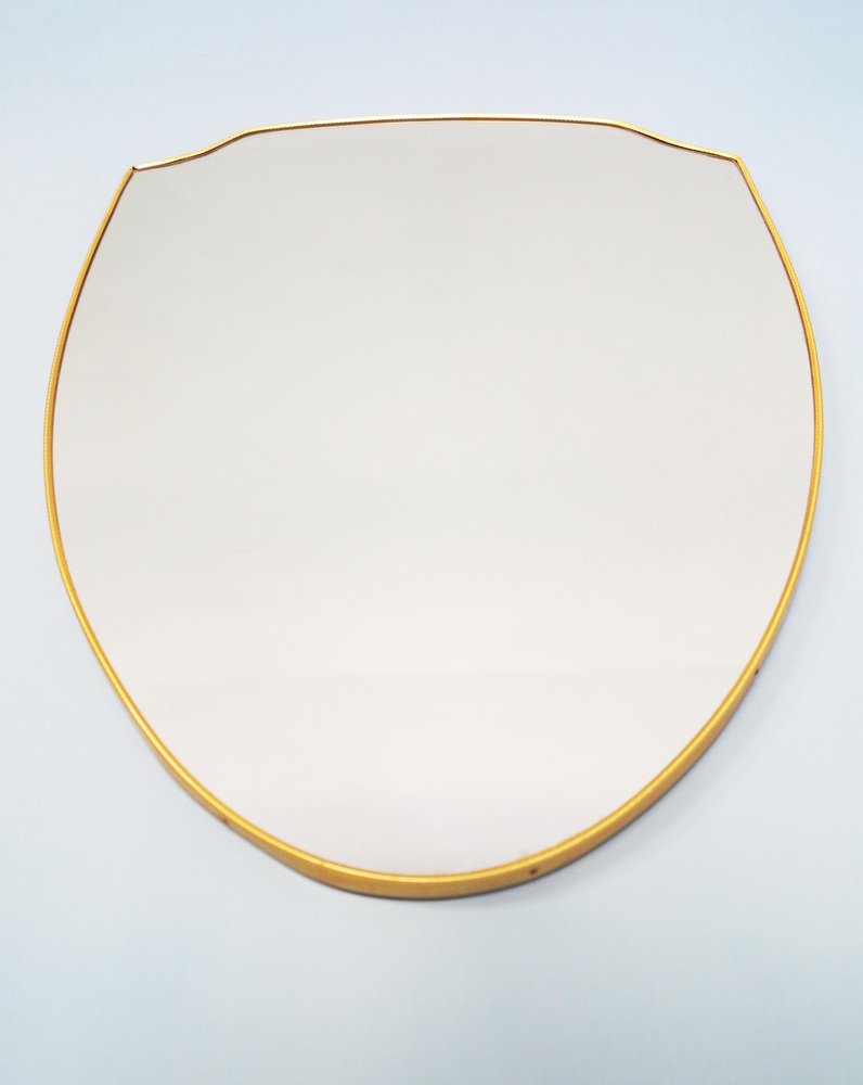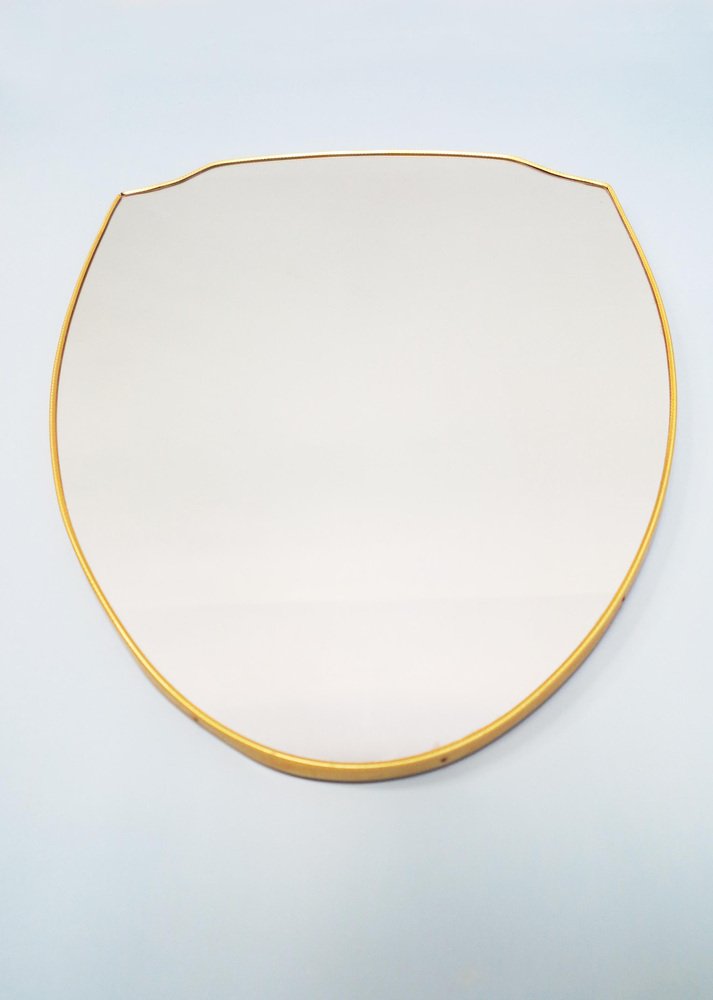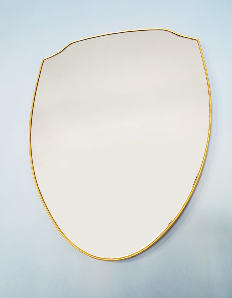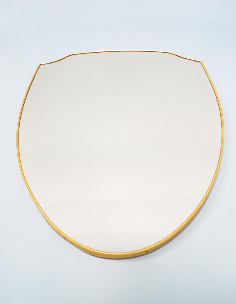 Schildförmiger Spiegel aus gebogenem PVC mit Messing-Effekt, 1950er