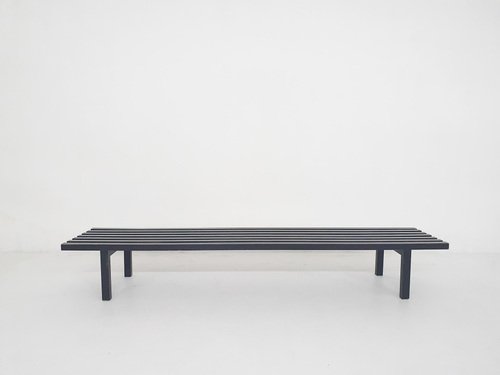 Schwarze Holzlattenbank zugeschrieben Wim Wilson and Gijs Bakker für Castelijn, Niederlande, 1970er