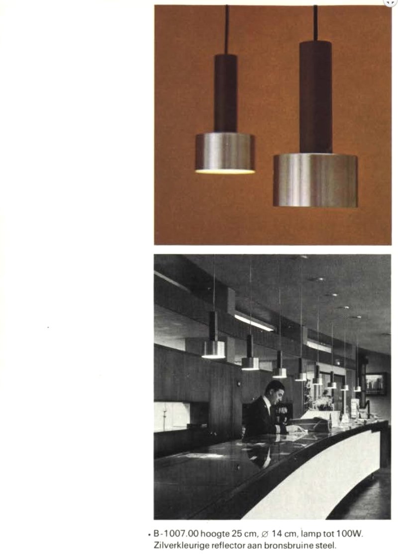 The last image shows a picture of pendant lights B-1007 shown in the 1960s Raak catalogue. Catalogues courtesy of vintageinfo